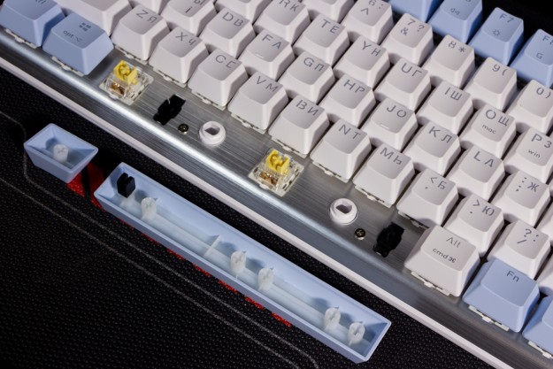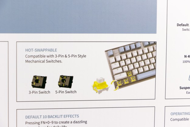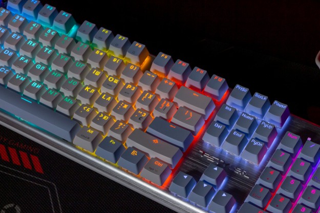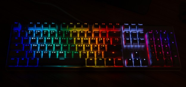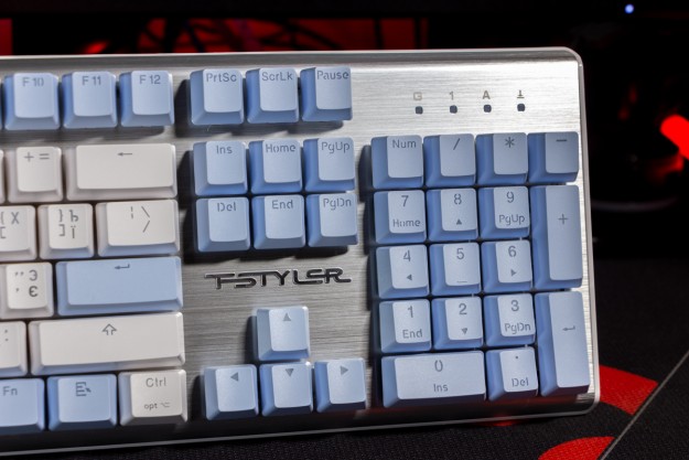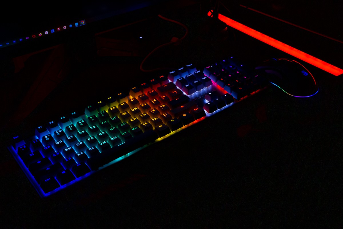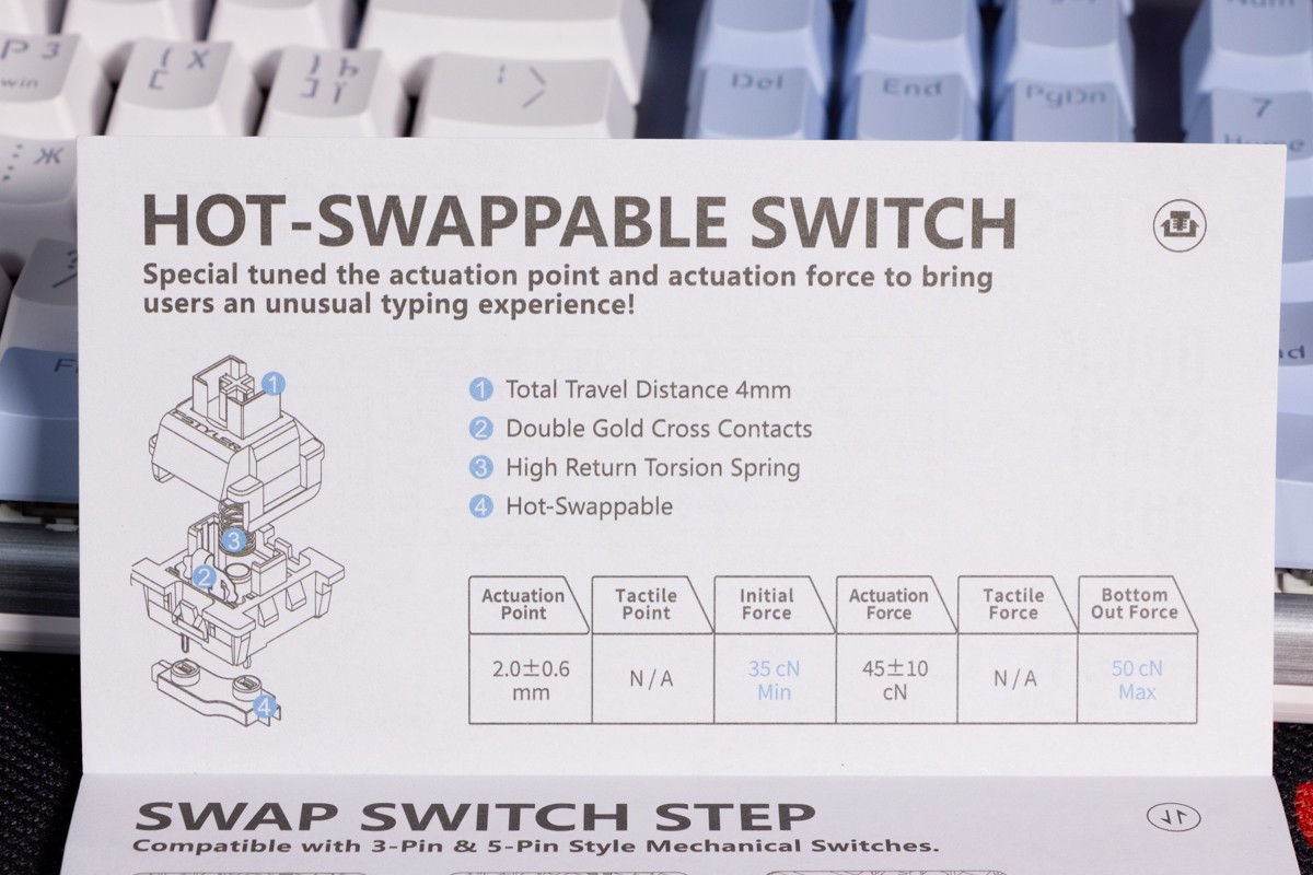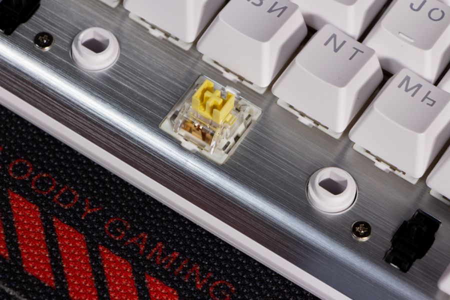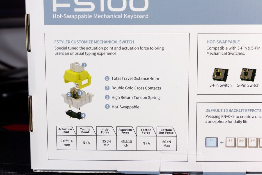 Огляд клавіатури A4Tech FS100: механіка з підсвіткою і металом в дизайніВ цьому огляді детально розповідаю про клавіатуру FS100 від бренду A4Tech з лінійки Fstyler. Без підсвітки її корпус виглядає класично, але якщо її увімкнути і почати натискати на клавіші приходить розуміння що маємо справу з ігровою клавіатурою. Вона при цьому не втратила фішок лінійки Fstyler, таких як можливість працювати під Windows і Mac з їх фірмовими комбінаціями клавіш. Ще у FS100 104 клавіші і є програмне забезпечення для налаштування декількох профілів, частота опитування клавіш 1000Гц, частота відгуку 1 мс та є можливість гарячої заміни перемикачів. Мої враження від пристрою та подробиці по характеристиках далі в огляді. Комплектація Клавіатура A4Tech Fstyler FS100 приїде до вас у коробці на якій детально інформується про характеристики перемикачів та особливості моделі. Всередині коробки лише клавіатура з підключеним нез’ємним кабелем та посібник користувача. Інструменти для зняття перемикачів і кейкапів відсутні. Це не проблема, адже в комплекті їх і немає. А якщо надумаєте докупити, то відразу ж купите інструмент. Кабель підключення заходить в клавіатуру по центру, але через канали вивести і зафіксувати його можна додатково наліво і направо. Кабель в обмотці з гуми, яка, на мій погляд, дуже надійна і довговічна. Довжини в 1,8 м метра вистачить для підключення. Дизайн та Корпус A4Tech FS100 - занадто стильна клавіатура, як для офісної. Адже саме такі моделі раніше мені зустрічались в серії Fstyler. По-перше, присутній алюміній в декорі. З металу панель під клавішами, що як мінімум наштовхує на думку, що виробник подумав про довговічність і витривалість конструкції. По-друге, сподобалось поєднання білого та блакитного кольору кейкапів. Колір ніжний і комфортний для очей, при цьому символи зчитуються добре. Офіційна назва кольору Icy Blue. Клавіатура не шумна навіть при активному наборі тексту. Багатошарова конструкція майже повністю нівелює брязкіт і його наслідки у вигляді відлуння. При необхідності під час гри або набору тексту корпус можна припідняти ніжками, змінивши кут нахилу приблизно на 5 градусів. Це додає комфорту. Також на нижній панелі передбачено три прогумованих ніжки для фіксації на слизьких поверхнях. Зверху над стрілками єдиний з видимих логотипів - Fstyler. Модель FS100 зроблена у форматі 100%, тобто у неї є повнорозмірний цифровий блок без бажання виробника зекономити на площі. І відмінність цієї моделі від також нової FS300, яка виконана у форматі 98%. FS100 отримала англійську розкладку та кирилицею. Українські літери “є”, “ї” та “і” нанесені сірим, що дуже схоже на напівпрозорий пластик яким сформовані базові набори символів. Уточню, що кейкапи виконані за технологією подвійного лиття. Тож загалом з дизайну нічого не випадає і в очах не рябить. Оскільки клавіатура сумісна з операційними системами Mac і Windows, на деяких клавішах присутні дублікати основних символів системи. Серед додаткових клавіш можна відзначити F1-F8 (для мультимедійних функцій) і "O"/"P" для перемикання між системами. Габарити клавіатури 440 х 135 х 36 мм, вага з кабелем 949 грамів. Зрібка виконана на відмінно. Перемикачі В клавіатурі FS100 встановлені перемикачі, які забезпечують рівномірне натискання на всій довжині ходу, приблизно 3 мм. Передбачена можливість гарячої заміни перемикачів з підтримкою 3 і 5-пінових, тож за бажанн