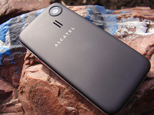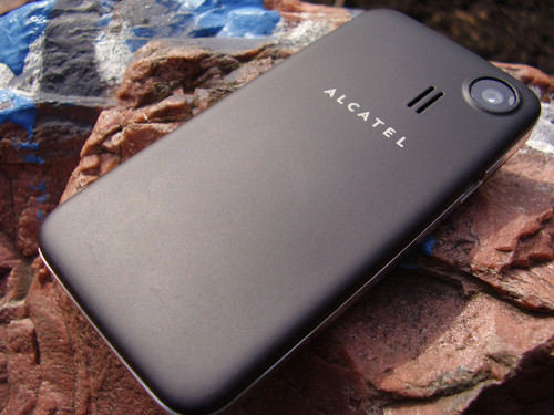 На тыльной стороне новинки расположена 1,3-мегапиксельная камера, а также сеточка динамика громкой связи. О функционале камеры мы расскажем отдельно, а что касается динамика, в Alcatel OT V-770 он стандартен – громкости вполне достаточно, чтобы расслышать мелодию входящего звонка даже в очень шумном месте.