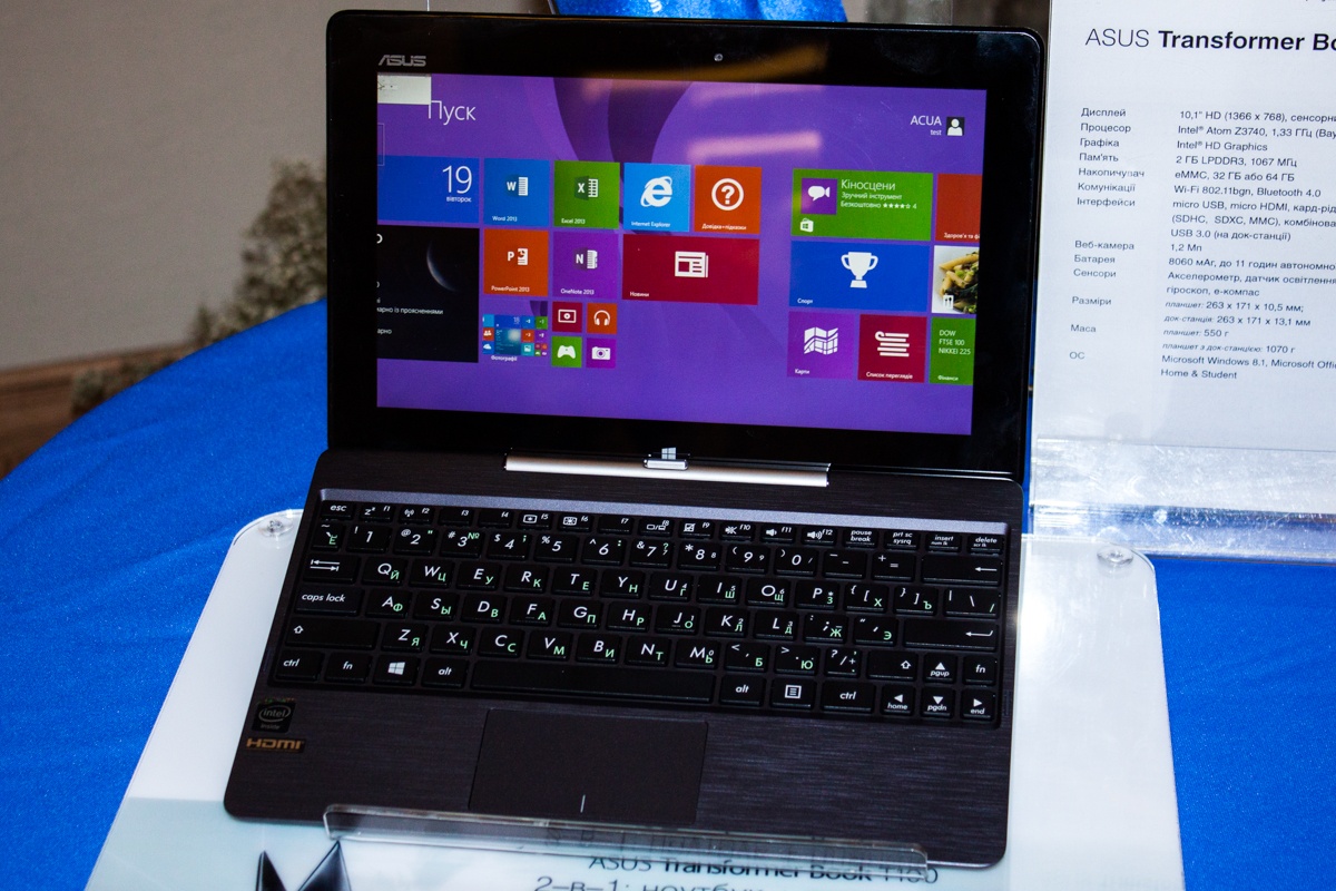 Первое знакомство с новым «трансформером» ASUS. 10.1-дюймовый планшет с 4-ядерным процессором Intel Atom Z3740 Bay Trail, 2 ГБ ОЗУ и 32/64 ГБ ПЗУ, а также емким аккумулятором, поддержкой Miracast и новой ОС Windows 8.1 «на борту». Главная же его «фишка» — способность легко трансформироваться с помощью док-станции в ноутбук. О первых впечатлениях и стоимости речь далее.