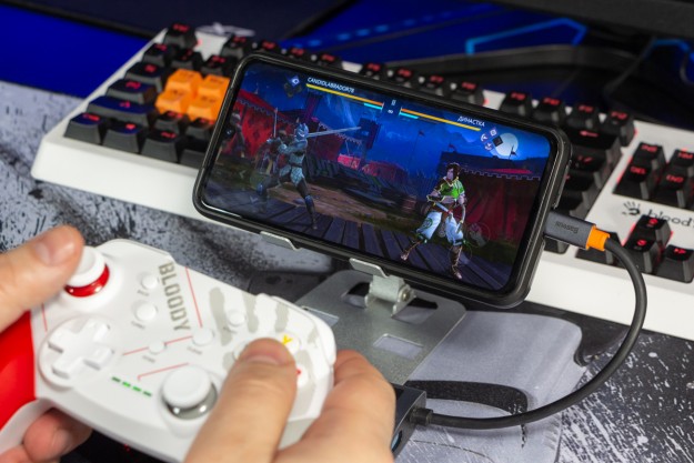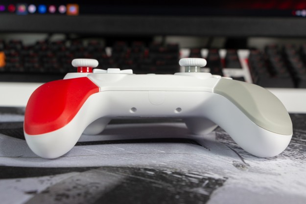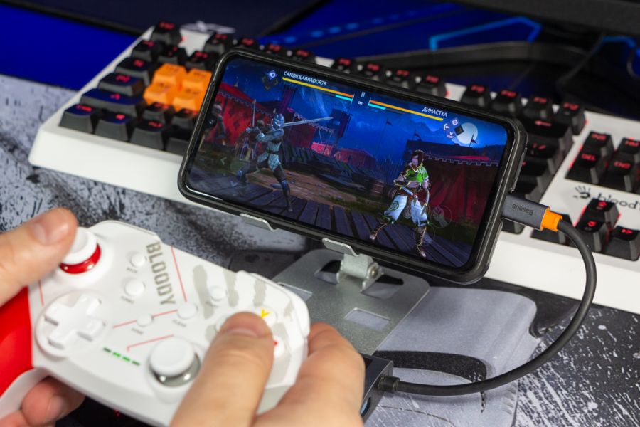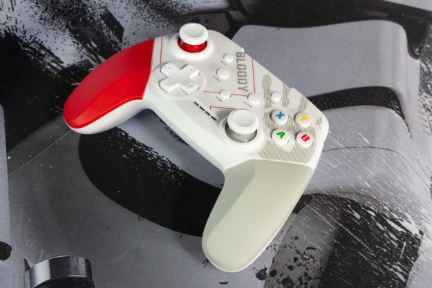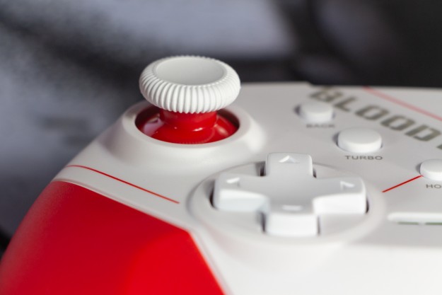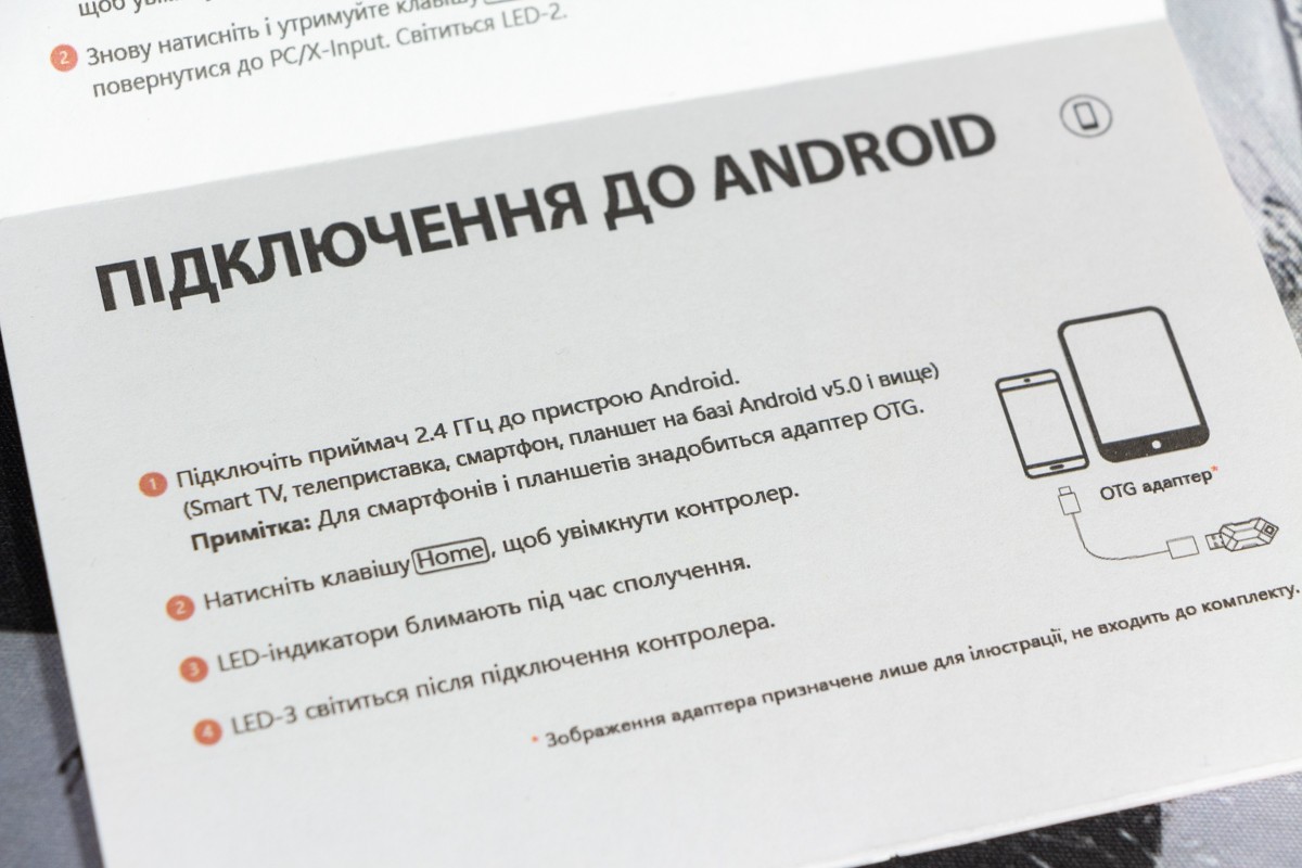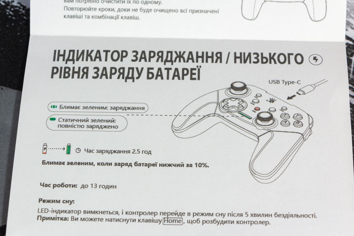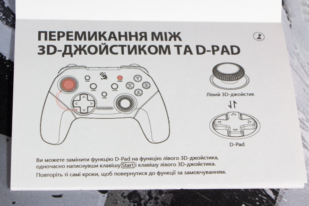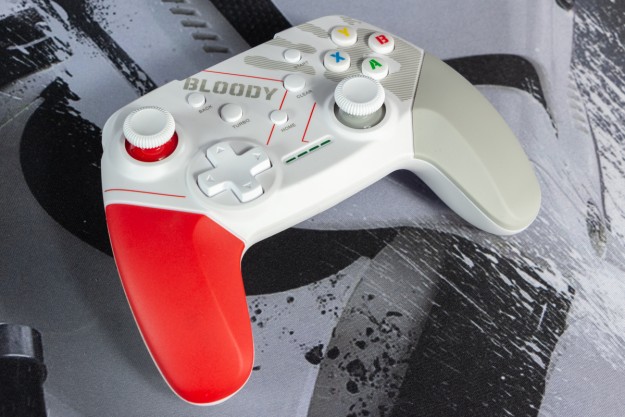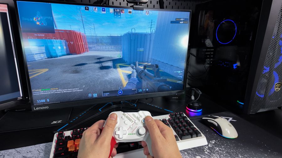 Огляд геймпада Bloody GPW50: яскравий корпус і підключення без дротівУ асортименті виробника ігрових аксесуарів Bloody є не лише клавіатури та мишки, а й спеціалізовані ігрові маніпулятори – геймпади. Найкрутішу модель GPW70, яка має більш пафосний дизайн з прогумованими вставками та RGB підсвіткою, вже оглядав. Цього разу поділюсь враженнями та покажу в дії модель GPW50 в біло-червоному кольорі корпусу Sports White. Подробиці нижче. Комплектація Геймпад потрапляє до власника у картонному боксі з віконцем, завдяки якому можна візуально оцінити пристрій без розпаковки. На зворотному боці упаковки розміщена детальна схема з описом всіх кнопок ігрового контролера Bloody GPW50. В коробці надійно запаковано геймпад, приймач бездротового сигналу, метровий USB A - USB C кабель для підзарядки і дротового підключення, інструкція. Дизайн і Корпус Почну з першого враження, яке сформував одразу як побачив геймпад і тактильно познайомився з матеріалами. У Bloody GPW50 дуже приємний по формі корпус, який виконаний із щільного матового пластику. Пристрій виглядає привабливо завдяки яскравій накладці червоного кольору, органічно вмальованому логотипу та яскравим написам на кнопках. Геймпад оснащений аналоговими стіками, розташованими асиметрично. Схема розміщення кнопок XYAB повторює Xbox. Додатковий комфорт у використанні забезпечують навігаційні клавіші Back, Home і Start. На передній частині геймпада розміщені два тригери та два курки. Між ними місце входу кабелю в корпус. Нижня частина корпусу не містить додаткових кнопок на відміну від моделі GPW70. З одного боку хотілось би більше функцій, а з іншого на геймпаді немає елементів що потребують звикання. А значить маємо стандартне управління та універсальне розміщення перемикачів та кнопок. Пара білих аналогових стіків покриті прогумованим матеріалом, що додає зчеплення з пальцями та надійніший контроль ігрового процесу. Всі інші кнопки гладкі, але над корпусом достатньо виступають і натискаються з зусиллям, що має знизити кількість випадкових натискань. Навіть якщо будете намагатись сильно зкручувати корпус скрипу не почуєте. Тож упевнений, що навіть в руках дуже агресивного геймера GPW50 зможе протриматись дуже довго. Корпус добре справляється з діагональними навантаженнями, не скрипить і створює відчуття цілісності конструкції. В моїх руках геймпад лежить комфортно, пальці дотягуються до усіх кнопок та перемикачів, з над зусиллям ні до чого не доводиться тягнутися. Долоні не втомлюються навіть при тривалому використанні, а завдяки матовому покриттю геймпад не вислизає з рук. Враження та Використання Підключав геймпад до комп’ютера на Windows та Android смартфона, вони без нюансів розпізнали пристрій. При підключенні до ПК загоряється другий індикатор, що сигналізує про активний режим X-input – найпоширеніший і актуальний стандарт. Водночас виробник передбачив можливість перемикання на старіший D-input, який стане в пригоді для ігор з 90-х та емуляторів. Для зміни режиму достатньо утримувати кнопку Home протягом трьох секунд, після чого загоряється перший світлодіод. Геймпад без проблем розпізнається у всіх іграх на ПК, і жодних додаткових налаштувань не потрібно. Спробував і автомобільний симулятор і звичайно ж файтинги. Для обох цих стилів, та й для інших, зручним виявився режим Turbo/Clear, що дозволяє швидко користуватись складними