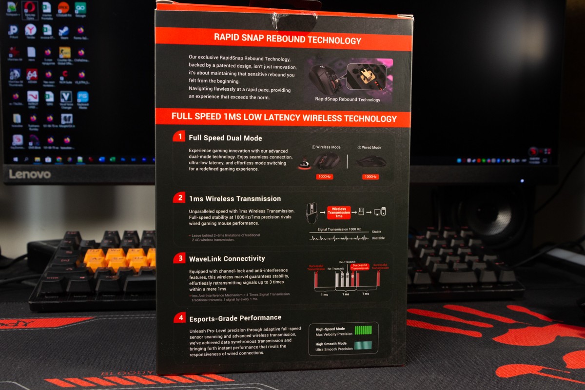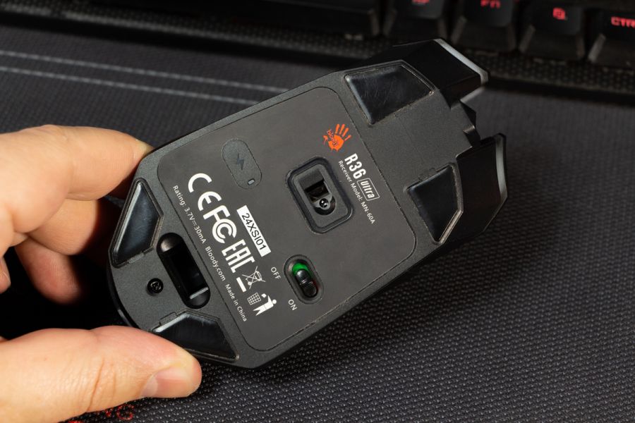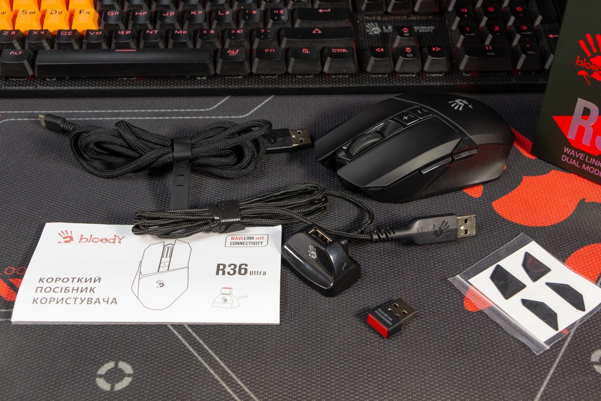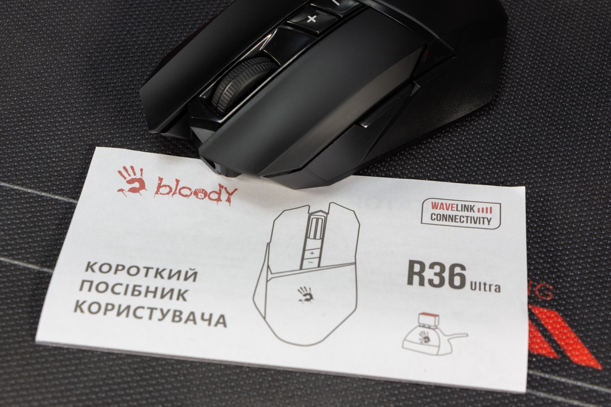 Огляд ігрової миші Bloody R36 Ultra: 12000 DPI, підключення без дротів і технологія швидкого відскокуЛінійку бездротових ігрових мишей в Bloody заповнюють поступово, але з прицілом на те, щоб кожен зміг підібрати собі пристрій за ціною та можливостям сенсора. На огляді в мене вже була модель Bloody R90 Plus, а цього разу оглядатиму Bloody R36 Ultra на базі нового сенсора PAW3313. Сенсор забезпечує частоту відгуку 1000 Гц і роздільну здатність до 12000 DPI, а передача даних відбувається через бездротове з'єднання WaveLink. Що це, навіщо, а також мої враження від використання миші дізнаєтесь з огляду. Комплектація Ігрова миша Bloody R36 Ultra потрапляє до покупця в міцній картонній коробці. Верхня кришка кріпиться на магнітах, що дає змогу оцінити зовнішність миші навіть без розпакування. До комплектації входить: мишка, кабель підключення Type C - Type A довжиною 1,8 метра в плетеному обплетенні з тканини, подовжувач для USB-ресивера 1,2 м, компактний USB-приймач 2,4 ГГц, чотири змінні тефлонові “ніжки” та посібник користувача. Детально зупинюсь в цьому розділі огляду на приймачі. Він забезпечує зв'язок між мишею та ноутбуком/ПК за технологією WaveLink і гарантує мінімальну затримку в 1 мс для бездротового підключення. Хаб, що йде в комплекті, додатково виконує функції блокування каналу і захисту від перешкод, передаючи стабільний сигнал з частотою 1000 Гц/1 мс. Механізм захисту від перешкод за 1 мс забезпечує 4-кратну передачу сигналу, тоді як традиційно при такому типі підключення це лише 1 сигнал за 1 мс. Саме тому Bloody R36 Ultra за швидкістю роботи максимально наближається до дротових моделей. Дизайн і Корпус Корпус Bloody R36 Ultra майже повністю з матового пластику, але декілька глянсових вставок все ж є. Їх додали, щоб дизайн виглядав не надто прісним, але вони не надто великі, щоб збирати відбитки пальців. Матеріали в цілому практичні, якість збірки відмінна. Вага миші 89 г без кабелю. Габарити 130х70х39 мм. Ергономіка корпусу без нарікань. Для моєї руки вона підходить ідеально. Виробник обрав зручний вигин для долоні, передбачив підтримку для крайніх пальців і “правильне” розташування елементів управління. Для тривалого використання в режимі “гри” Bloody R36 Ultra не просто підходить ідеально, вона створена саме для нього. На корпусі 7 кнопок. Верхня пара кнопок +/- потрібні для зміни роздільної здатності сенсора, а пару бічних по лівій сторона можна налаштувати для виконання різних дій або використання макросів. За замовчуванням кнопки +/- змінюють роздільну здатність сенсора між значеннями 1000, 1200, 1600, 2000 і 3200 DPI. Пара великих клавіш під вказівний та середній палець має зручну увігнуту форму. Додатково вони отримали технологію швидкого відскоку Rapid Snap Rebound, а заявлений виробником ресурс розрахований на 20 млн натискань. Натискання відчуваються чітко, відскок реально швидкий, по рівню шуму клавіші не гучні. При подвійних кліках пропусків не помітив, так само як і жодних зайвих натискань під час звичайного використання і в іграх. Колесо прокрутки комфортне по ширині, покрите рельєфним прогумованим матеріалом, на клік реагує прогнозовано та має витримати до 800.000 обертів. При зміні кнопками на корпусі роздільної здатності колесо прокрутки підсвічується різними кольорами, підсвітка гасне через 15 секунд. Більше елементів з підсвіткою на корпусі немає. Кабель для дротового підключення та підзарядки підключається поперед