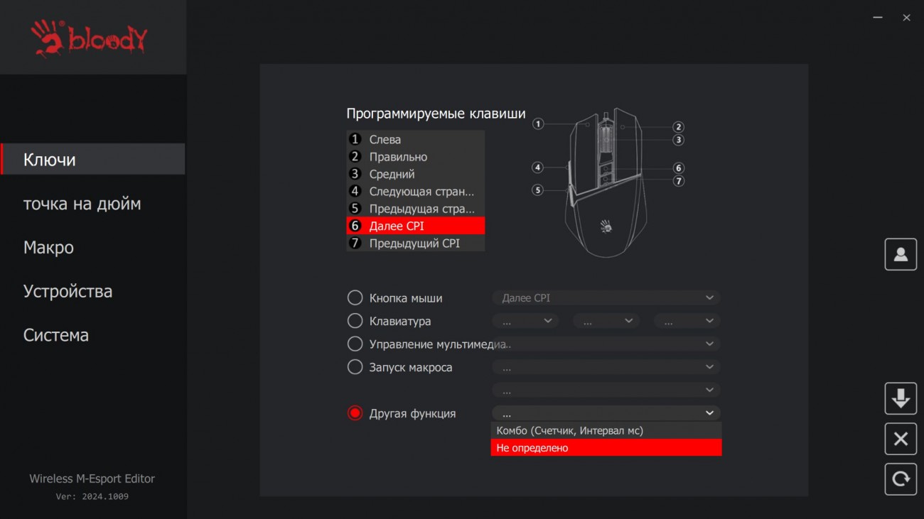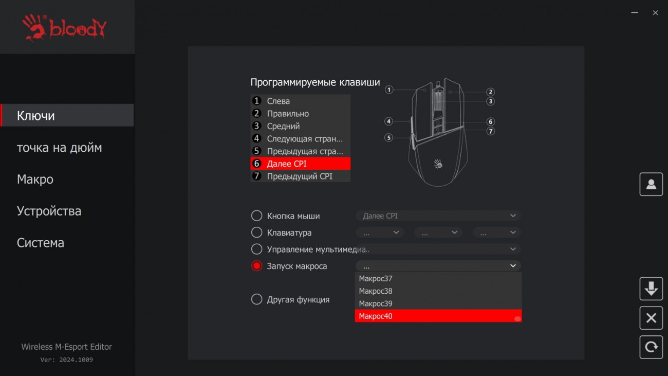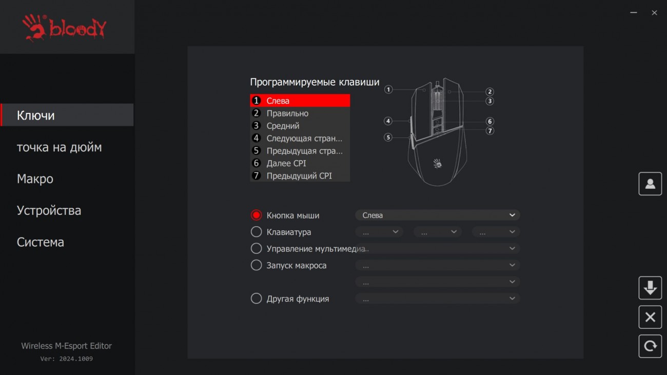 В іграх R36 Ultra показала себе дуже добре. У робочих додатках вона відпрацьовує також без нарікань. Якщо док станцію для приймача поставите на відстані до 30 см від миші, то цього буде цілком достатньо, щоб уникнути розривів з'єднання. Програмне забезпечення Для повного доступу до функцій ігрової миші варто встановити софт під назвою Wireless M-Esport Editor. Додаток M-Esport складається з п'яти вкладок: