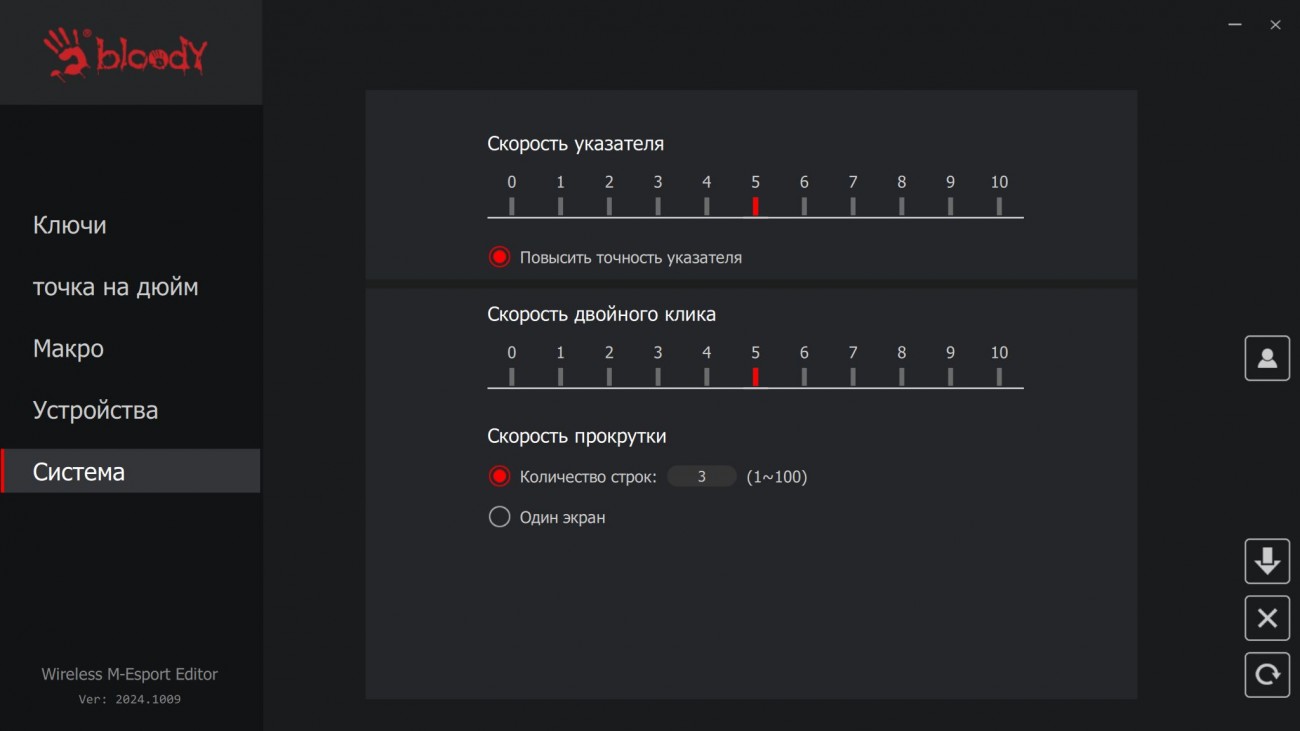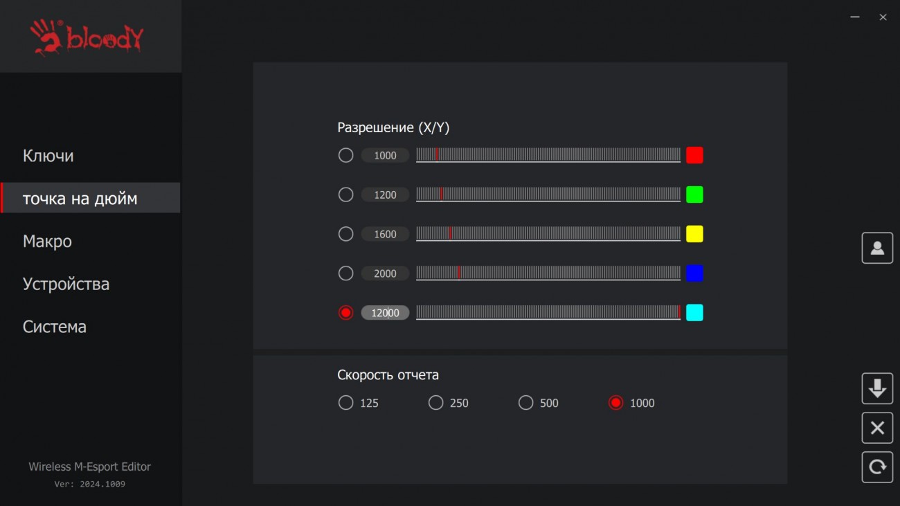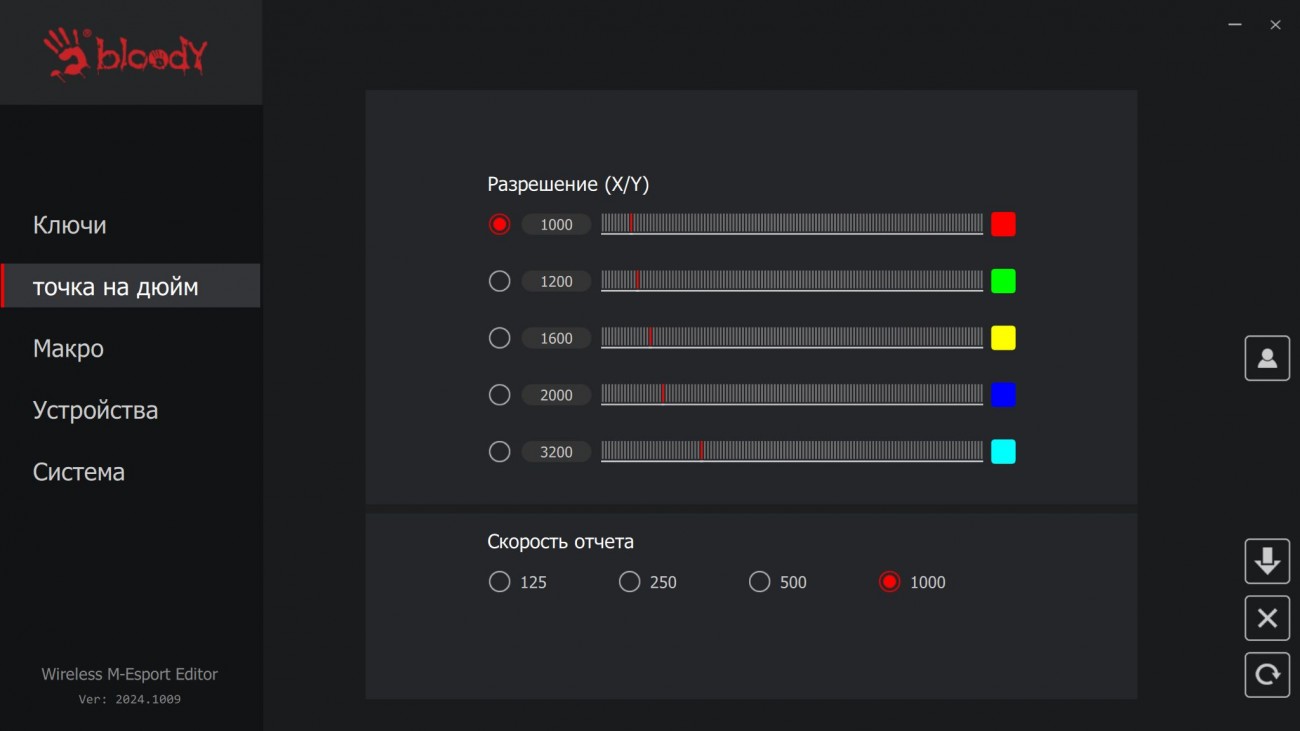 Користувач може налаштувати під себе одразу три профілі і перемикатись між ними в цьому додатку. Параметри, що налаштуєте зберігаються у вбудованій пам'яті миші обсягом 512 Кб. Автономність За два тижні користування мишею по 8 годин (в робочі дні) мені вдалось її розрядити в “0” лише на 9-й день. А це понад 70 годин активної експлуатації. Індикатор на корпусі почне блимати червоним якщо залишок заряду стане менше ніж 15%. Повна зарядка займає не більше 2 годин. Висновок Bloody R36 Ultra - це на сьогодні мій ТОП серед бездротових мишей, яка майже не поступається дротовим аналогам за технічними характеристиками. Частота відгуку 1000 Гц, роздільна здатність сенсора до 12000 DPI, швидкість відстеження 300 кадрів на секунду і зручна ергономіка роблять з моделі Bloody R36 Ultra еталоном у своєму сегменті. Варто відзначити, що миша не була б такою технічно досконалою, якби в ній не були задіяні фірмові технології та софт компанії. Це програма M-Esport, технологія швидкого відскоку Snap та технологія підключення через WaveLink, що гарантує стабільний сигнал з низькою затримкою при його передачі. Недоліки у Bloody R36 Ultra, як на мене, відсутні. Рекомендую цю модель усім, хто обирає надійну бездротову мишу з конкурентними технічними характеристиками.