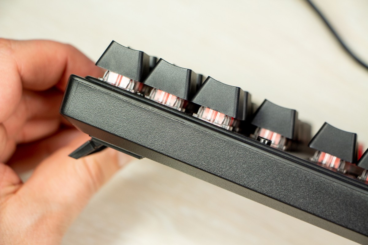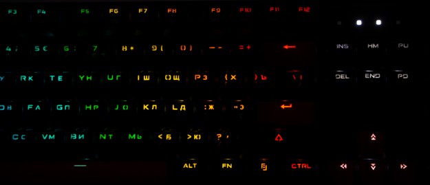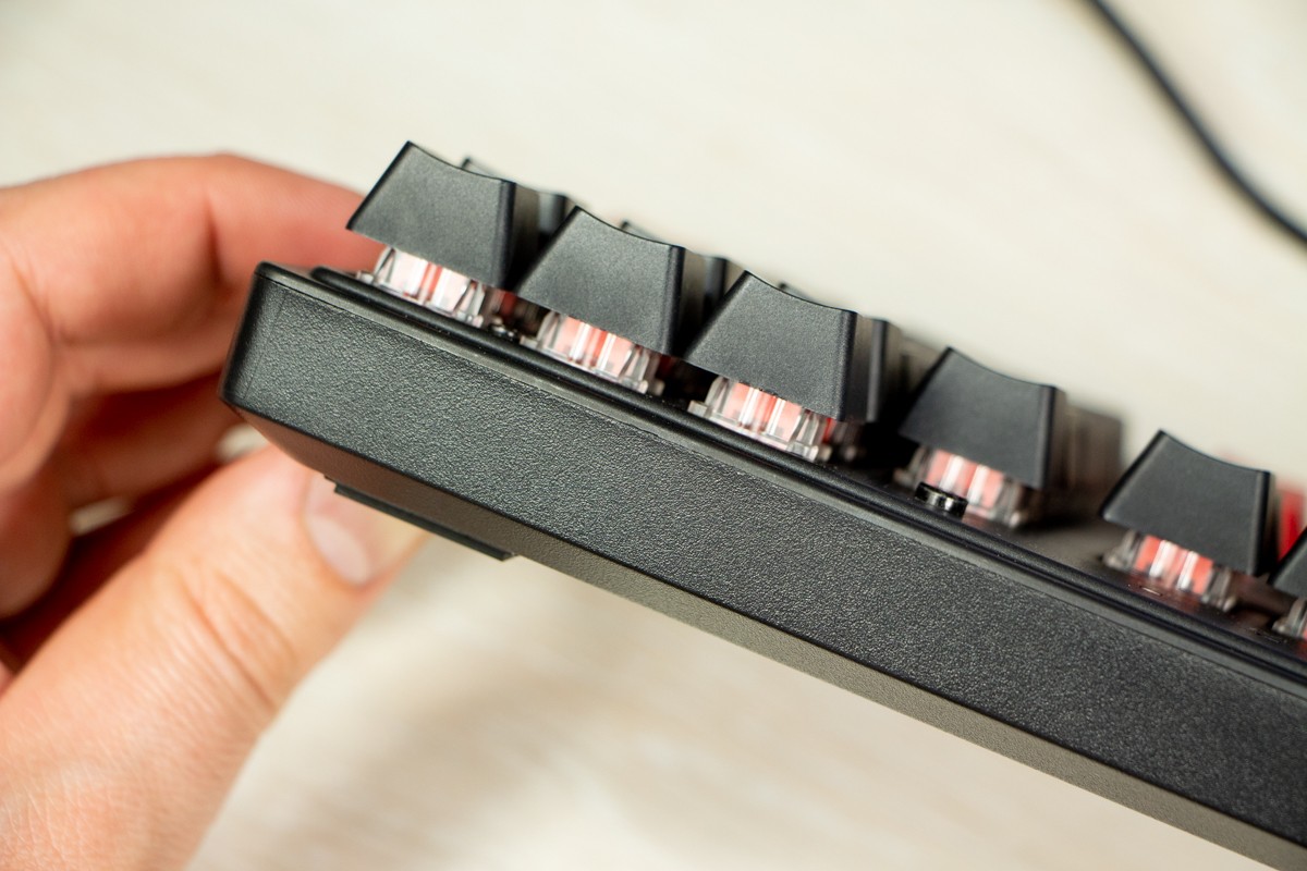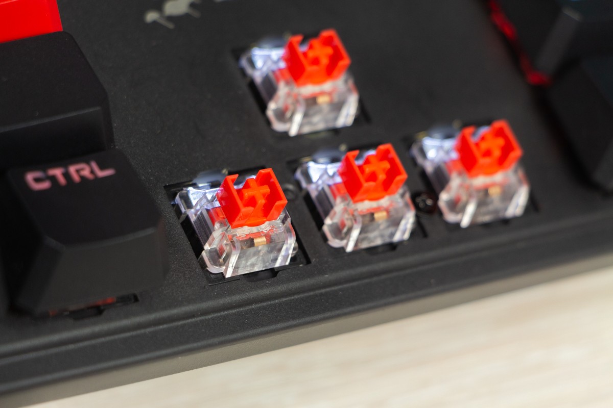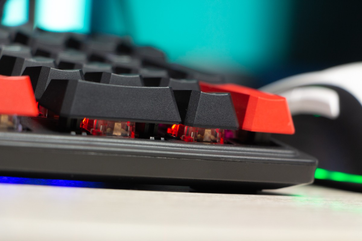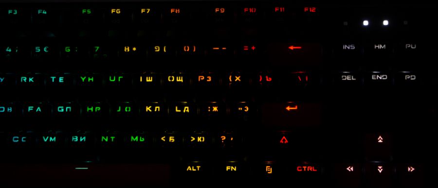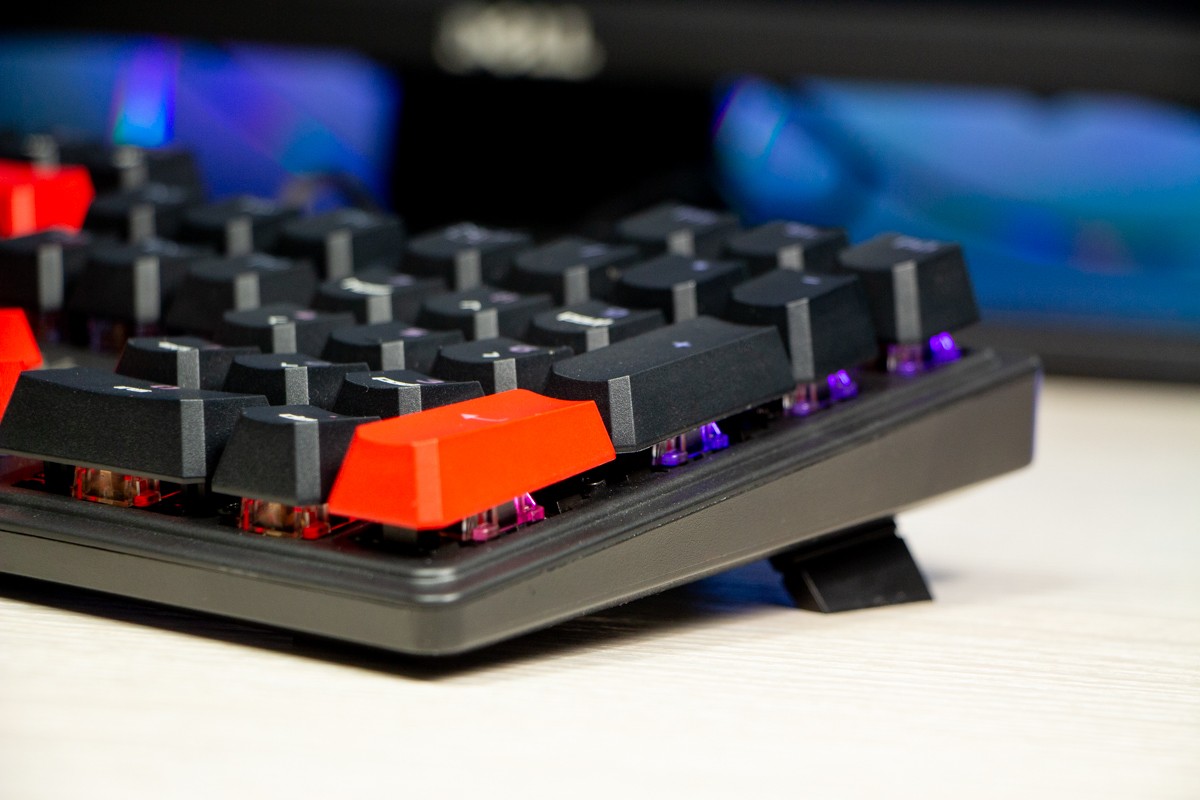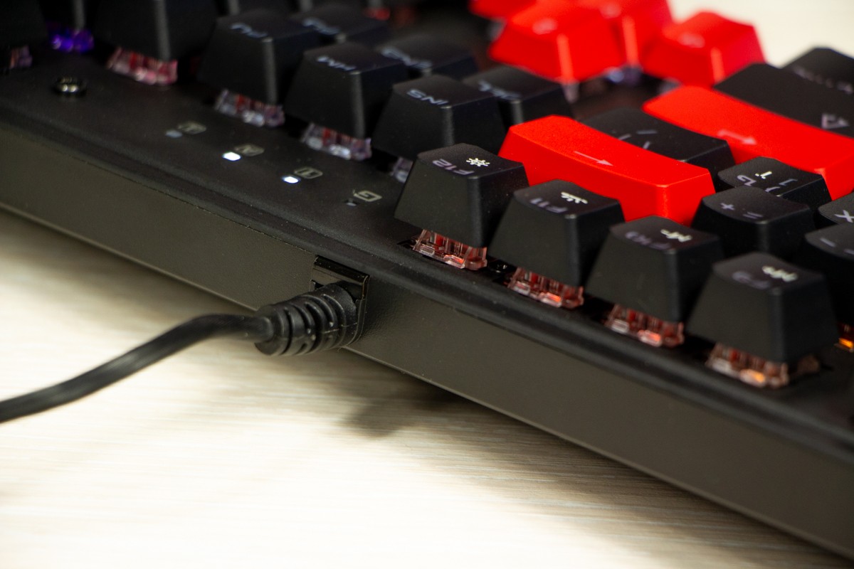 Огляд клавіатури Bloody S510N: механіка з неоновою підсвіткою, часом відгуку 1 мс і частотою опитування 1000 ГцBloody S510N - механічна ігрова клавіатура, що поповнила і так доволі широку лінійку ігрових аксесуарів бренду. Модель цікава тим, що має клавіші з відгуком в 1 мс, частоту опитування 1000 Гц і неонову підсвітку з 10 режимами роботи. Подробиці розповідаю в огляді. Комплектація Клавіатура Bloody S510N поставляється в класичній для бренду картонній коробці, де зображено пристрій і його характеристики, а також особливості перемикачів BLMS. Дизайн та Корпус Bloody S510 – повнорозмірна клавіатура, що має 104 стандартні клавіші. Частина з них мають яскраво-помаранчевий колір (майже червоний). Якщо для вас це занадто і бажаєте більш скромного дизайну, то виробник поклав у комплект аналогічні кейкапи чорного кольору. Клавіатура має похилу конструкцію клавіш з невеликими заглибленнями. Ця особливість знижує ймовірність випадкового натискання, що особливо корисно в іграх. Кнопки мають злегка округлену форму з кількома гранями в основі. Для пальців зручно, для дизайну клавіатури – додаткова відмінність від конкурентів. Варто зазначити, що при виготовленні кейкапів виробник використовував метод подвійного лиття задля забезпечення довговічності символів. Останні, окрім того, що розміщені в один ряд на обох мовах, так ще і виконані з дуже оригінального шрифту. Українська літера «і» присутня на звичному для неї місці. Тактильно клавіші приємні, набирати текст на клавіатурі довгий час – не проблема. Для мене навіть 3-4 години роботи без перерви були комфортними. Клавіші мають витримати до 50 млн. натискань. Це легко помітити навіть по пробілу, якому додали подвійні гвинти, подвійні пружини та компенсуючу планку. На нижній частині клавіатури чотири прогумовані ніжки, які запобігають ковзанню навіть по слизьким та похилим поверхням. Додаткова пара ніжок відкидається набік та піднімає віддалену частину корпусу для зручності роботи. Ніжки самовільно не закриваються навіть при суттєвому надавлюванні на корпус. Ще на кришці по периметру та в основі є дренажні отвори та канали на випадок, якщо на клавіатуру випадково проллють каву, чай, воду або щось солодке. Для підключення до комп’ютеру використовується кабель USB довжиною 1.8 метрів. Обплетення з тканини відсутнє, але прогумований захист є. Загалом враження від корпусу Bloody S510N, збірки та підбору матеріалів тільки позитивні. Посилює позитивне враження наявність змінних клавіш чорного кольору та підсвічування. Перемикачі На основі кейкапів – червоні механічні перемикачі BLMS (Bloody Mechanical Switch). Їх налаштували під високу швидкість натискання: довжина ходу становить 4 мм, а точка спрацьовування 2 мм. Швидкість відгуку складає всього 1 мс, а це майже миттєво. В іграх клавіатура поводить себе «зразково». Реалізоване 100% N-клавішне натискання, а значить клавіатурою реєструється кожне натискання на клавішу, незалежно від того, скільки кнопок утримується або одночасно натиснуто. Підсвітка Можливості по підсвічуванню Bloody S510N краще одразу переглянути на фото нижче. Підсвічування неонове - переходить від синього до фіолетового. Через функціональну клавішу його можна змінювати наступним чином: