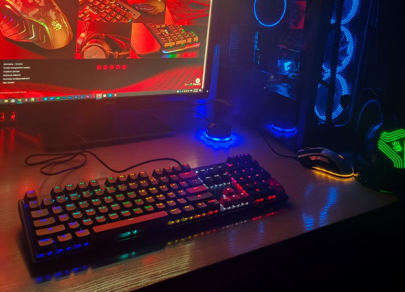 В роботі та іграх Два тижні активно використовував клавіатуру по роботі. Механізм перемикачів налаштовано таким чином, що навіть легке, але цілеспрямоване натискання, призводить до появи символу на екрані. Звук від натискання клавіш не голосний, але присутній. В іграх відмічу швидкий відгук, а значить і керованість персонажами, незалежно від стилю гри. Особливо зміни можуть помітити ті, хто раніше користувався клавіатурами на офісних ноутбуках. Висновки Клавіатуру Bloody S510 не можу назвати простою, адже вона швидка, гарно виглядає, виконана з якісних матеріалів та має підсвітку зі змінними режимами. Це робить її привабливою не лише для початківців, але й геймерів зі стажем, які звикли раціонально витрачати свій бюджет на ігрові аксесуари.