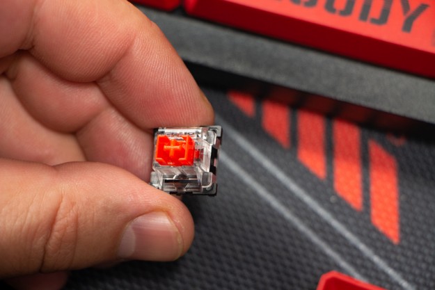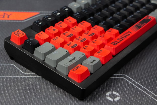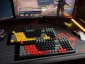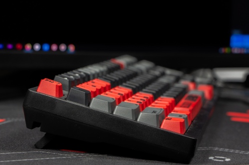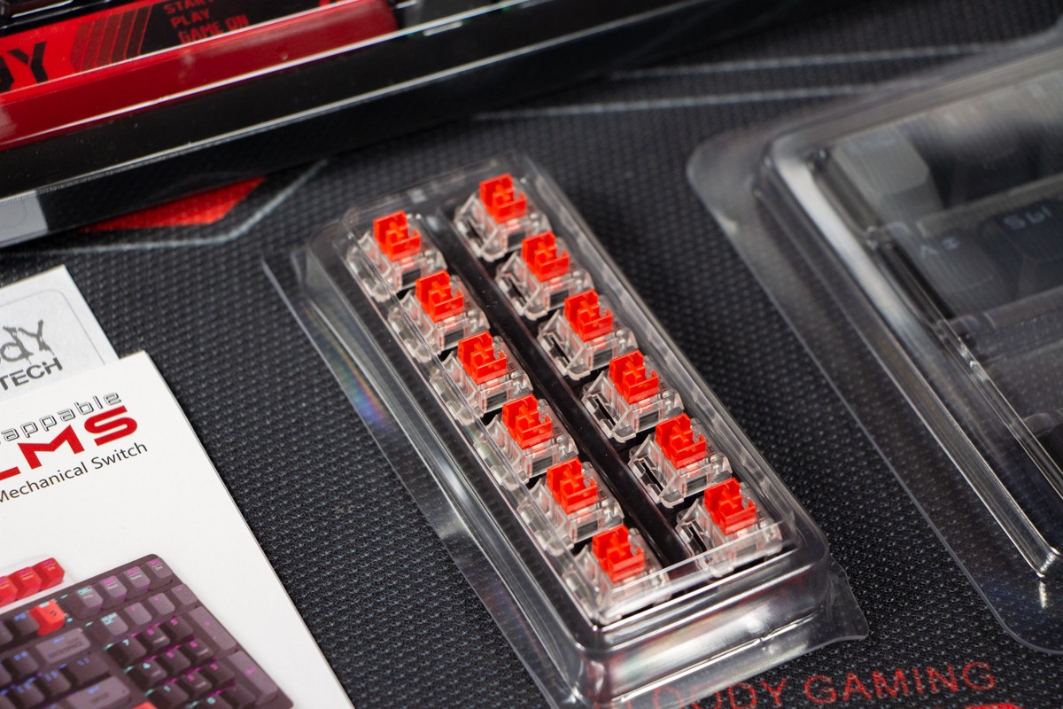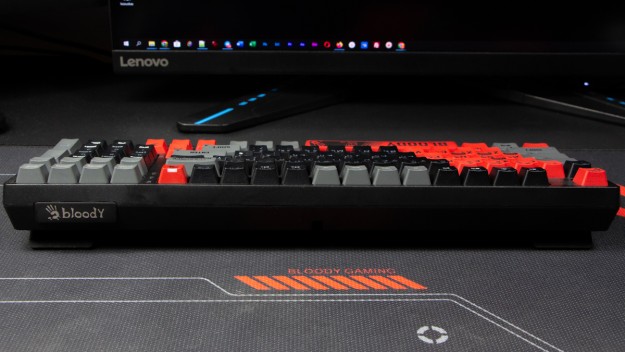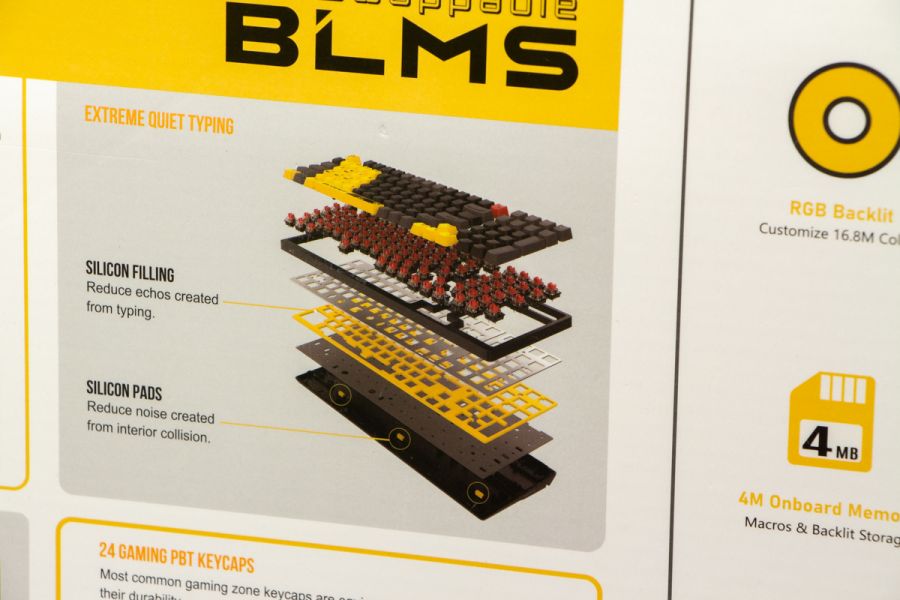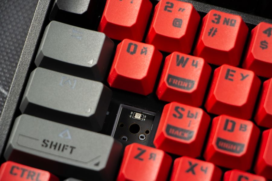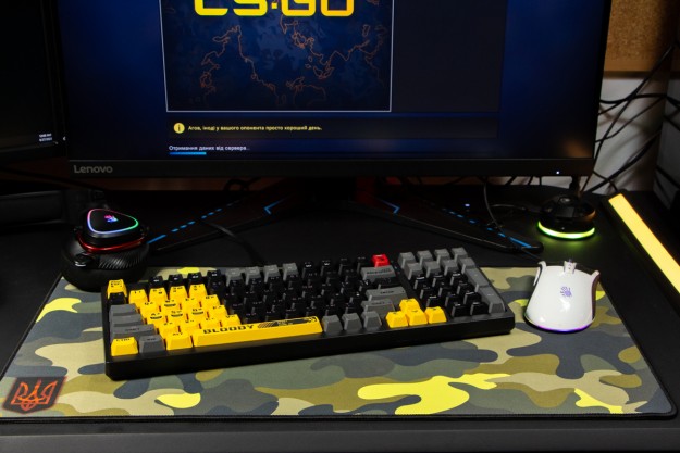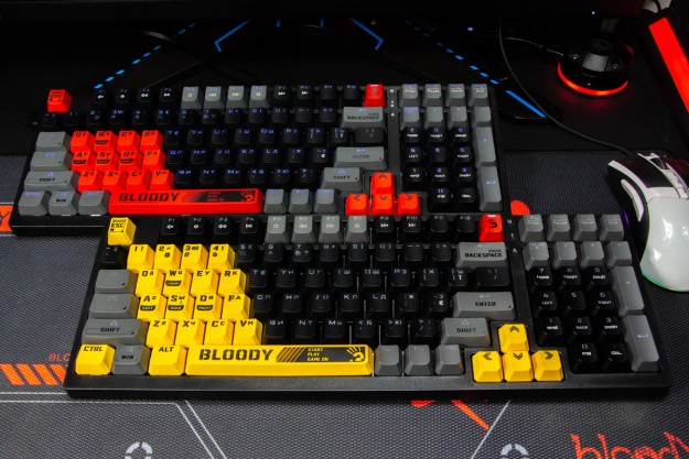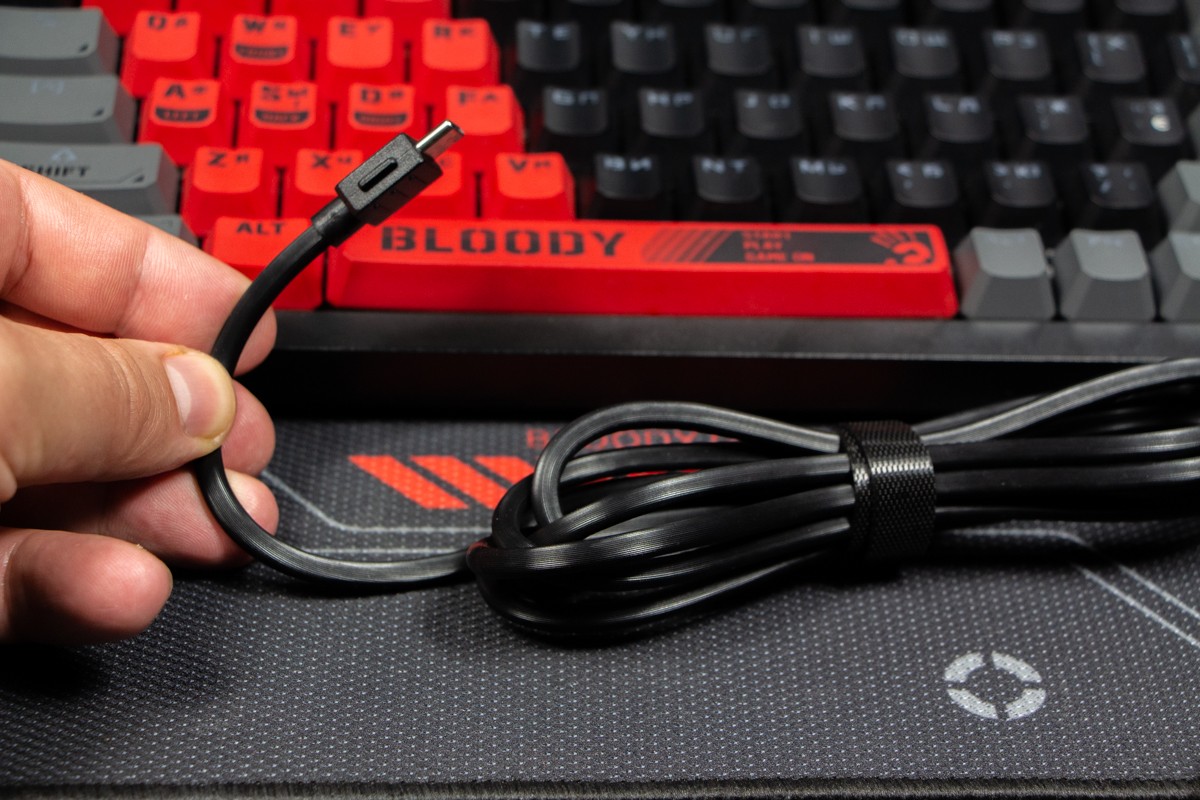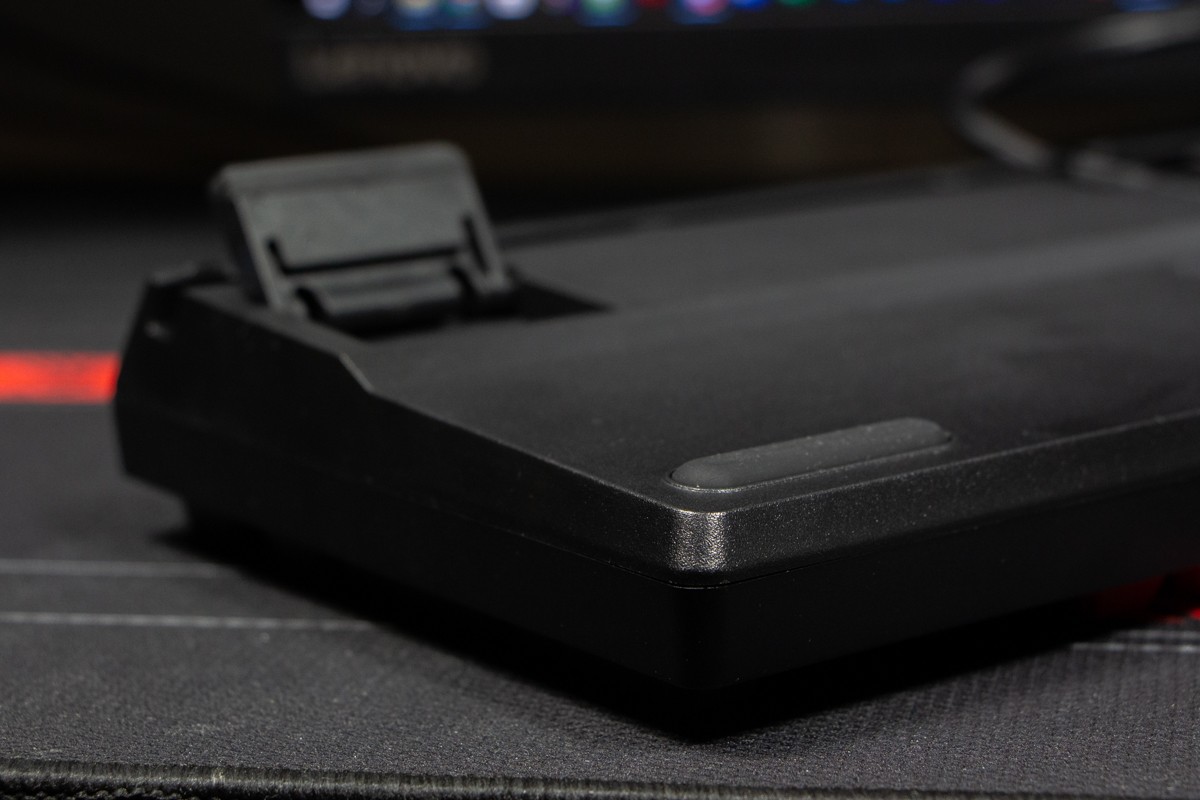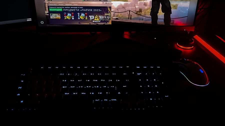 Огляд клавіатури Bloody S98: реально ігрова, яскрава, компактна і надійнаМеханічна ігрова клавіатура Bloody S98 з перемикачами BLMS Red ні в чому не обмежує свого власника, хоч виробник і поставив собі за мету зробити її компактною без втрати окремого цифрового блоку. Налаштування підсвітки, 98 клавіш, регульовані ніжки і зручний кабель менеджмент, пам’ять для зберігання ігрових режимів – це більшість, але не всі особливості клавіатури. Враження від експлуатації, особливості перемикачів і деталі по варіантах підсвічування розповім далі у огляді. Комплектація Вже звик, що всі клавіатури Bloody пропонуються у червоно-чорних кольорах? Так от Bloody S98 навіть коробкою відрізняється від інших моделей виробника, бо має переважаючий білий колір. Технічні характеристики та фото пристрою на пакуванні присутні. Всередині коробки знаходимо клавіатуру з прозорою кришкою, зрозумілий і інформативний посібник користувача, 12 додаткових червоних BLMS перемикачів, клавіші чорного та сірого кольору на заміну червоним, інструмент для зняття кейкапів та перемикачів, і кабель USB C – USB A для підключення до ПК або ноутбуку. Відмічу якісне прогумоване покриття кабелю, довжина якого 1,8 м, а також можливість його виводу з-під корпусу клавіатури на три сторони. Дизайн і Корпус Bloody S98 – компактна клавіатура з габаритами 385х138х41 мм. Нижче можете бачити її фото поруч з клавіатурою Bloody B810RC, яку можна вважати «класичним» форматом. Зменшення габаритів моделі Bloody S98 відбулось шляхом розташування клавіш у дві секції. Основний лівий блок максимально наблизили до клавіш-цифр, причому місця між ними вистачило лише для індикаторів. На стику секцій розмістили стрілки, а більшість того, що прибрали над ними, розмістили над цифровим блоком. Навіть для PrtScr там знайшлось місце. Щоправда, пару звичних клавіш натискаються в парі з кнопкою FN. Форма корпусу клавіатури – прямокутник, що максимально компактно. Трішки заокруглені лише краї в місцях зустрічі торців. Відстань від клавіш до краю корпусу мінімальна. Основний колір корпусу – чорний, червоного додають лише 25 кейкапів у моделі S98 Sports Red. У моделі S98 Sports Lime ці клавіші жовті. Особисто я обрав би червоний, але і жовтий виглядає яскраво, якщо вдало підібрали килимок. Завдяки грі кольорів клавіатура може виглядати яскраво, але власник може при бажанні все «затемнити» змінними кейкапами з комплектації. 24 зі згаданих червоних кейкапів зроблені з PBT (полібутилентерефталату). Це більш довговічний пластик, який потрібен «агресивним» ігроманам. Ці кейпаки виготовлені методом подвійного лиття, завдяки чому написи на кнопках стерти майже неможливо. Звертаю увагу на форму клавіш. Зверху вони скошені зліва і праворуч аби поліпшити тактильний контакт. На червоних та жовтих клавішах принт більший, а пробіл прикрасили логотипом і слоганом бренду Bloody. Натискаючи на клавішу не почуєте дзвінкий клік, бо конструктивно передбачені силіконові накладки. А це значить, що граючи або набираючи тексти будете по мінімуму заважати оточуючим. По столі клавіатура також «бити» не буде, бо тилова сторона опирається на чотири прогумовані ніжки. Відкидні ніжки для зручності можуть підіймати корпус трішки більше ніж на 1 см, а це змінює кут нахилу майже на 7 градусів. Десь близько десяти клавіатур Bloody пройшли через мої руки і по якості збірки до них питання не виникали, д