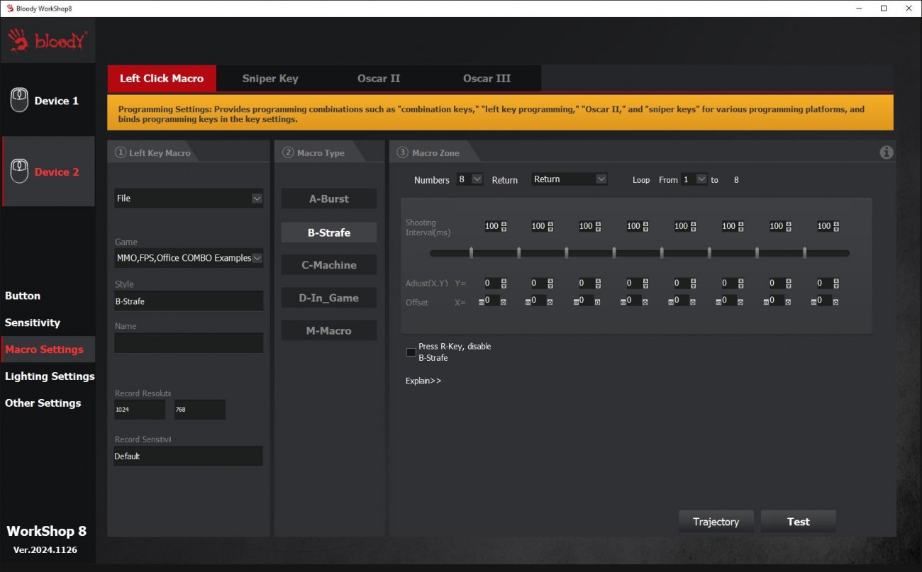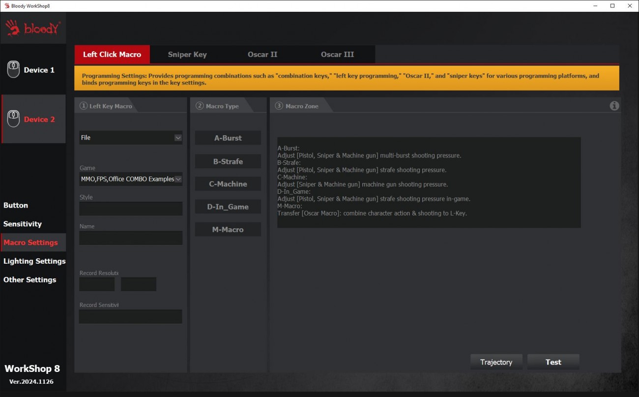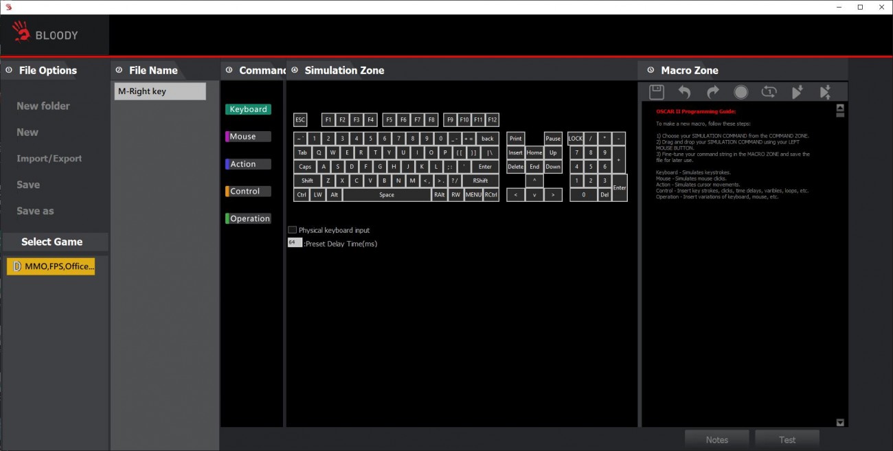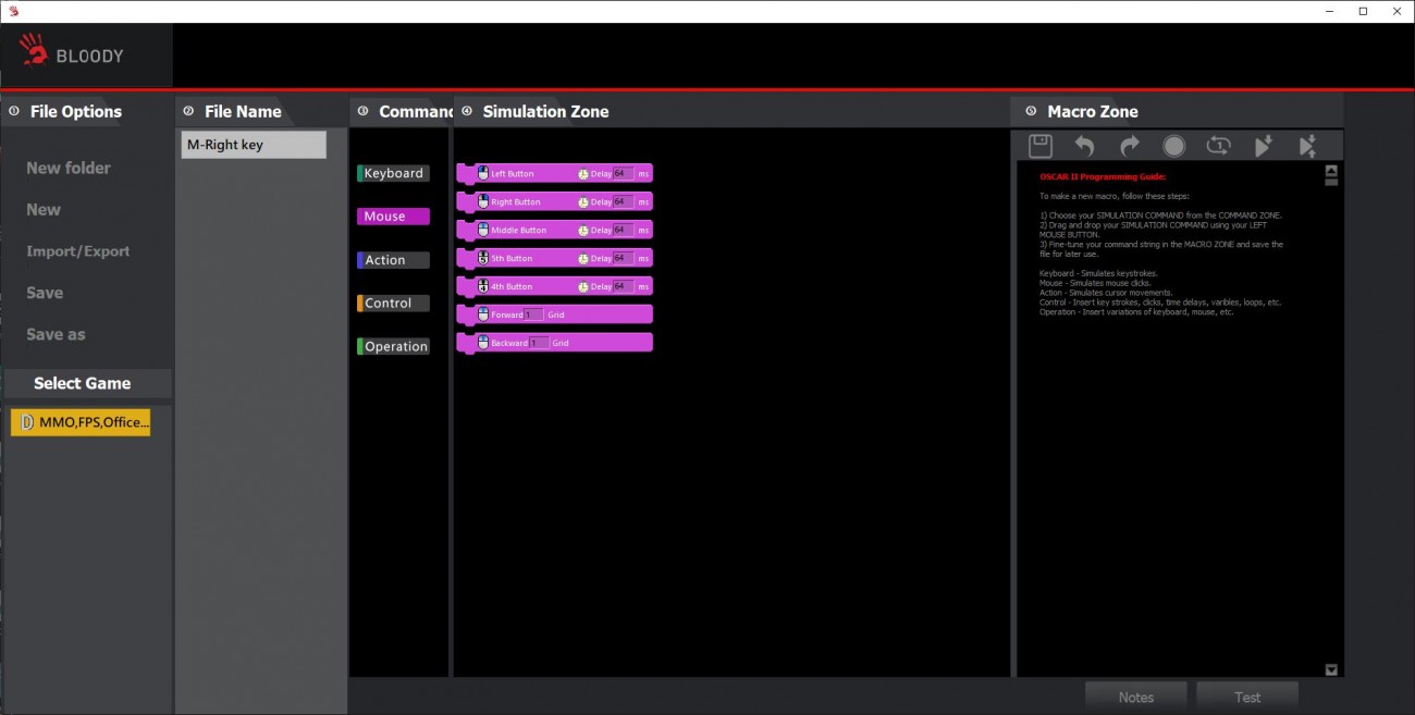 Коротко про макроси, якщо не зовсім розумієте що це. Ви задаєте послідовність команд або дій зі списку доступних, і програма формує макрос, який можна зберегти в пам'яті контролера миші. Це дозволяє автоматизувати складні ігрові завдання або виконувати послідовність дій одним натисканням кнопки. Саме тому в миші передбачена вбудована пам’ять обсягом 4 Мб, що дозволяє зберегти понад 100 тисяч макросів. Висновки Bloody W72 Ultra - ігрова миша, яка хоч і немає підсвітки, але акцентами кольорів корпусу і піксельними малюнками геймерський стиль витримує. Коли ж розбираєшся в деталях, що може її сенсор, сумніви щодо ігрового походження навіть не виникають. Мишка ідеально лягла в руку, форма корпусу виявилася зручною, і часу на звикання не знадобилося. Розміщення кнопок зручне, розмір і виступ колеса якраз під мою руку. Мишка легка, тривале використання дискомфорту руці не завдає. Можливості ПО і додаткові кнопки дуже корисні не лише в ігрових сценаріях, але під час інтенсивної роботи, адже можуть значно зменшити кількість натискань для виконання рутинних завдань. Тільки це лише в тому випадку, якщо розберетесь в софті та самі під себе налаштуєте відповідні комбінації. В іграх миша проявила себе відмінно. Налаштовувані профілі реально зручні для тих, хто в цьому розуміється і буде купувати цю мишу не лише за її цікаву і трошки “ретро” зовнішність. Хоча я впевнений, що знайдуться й такі.