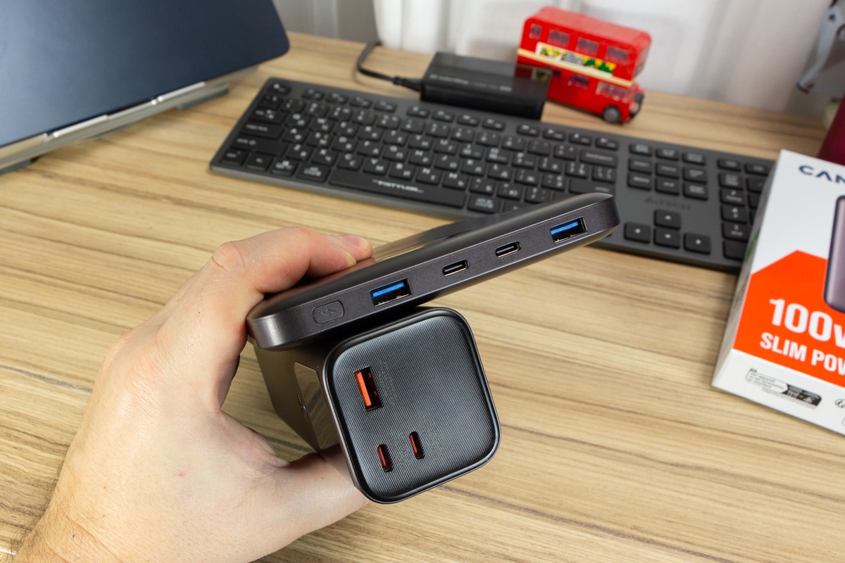 Висновок Павербанк PB-2008 не перший від Canyon, яким я активно користуюсь, і планую це робити й далі. Вже маю модель Canyon PB-2010, яка за півроку жодного разу не підвела. Але були випадки, коли її трьох портів було замало, тож PB-2008 у цьому плані має перевагу. А ще він легший майже на 200 г, і корпус у нього пласкик, що для деяких є важливим. Canyon PB-2008 — це павербанк зі швидкою зарядкою, один з портів Type C PD 3.0 може видавати потужність до 100 Вт. А це гарантія того, що за 30 хвилин ваш MacBook буде заряджено мінімум на третину. Перевага пристрою в тому, що можна одночасно підзаряджати павербанк через один USB-C порт і віддавати заряд з інших портів. Модель PB-2008 ідеально підходить для подорожей завдяки своїй швидкій зарядці на 65 Вт та невеликим габаритам. Зручності додає світлодіодний дисплей, який показує залишок заряду. Як побажання, я б хотів, щоб тут був такий самий просунутий дисплей, як у моделі PB-2010. Але при цьому розумію, що для більшості людей інформація про потужність на кожному порту зайва. Тож реальних недоліків у цієї батареї не знайшов. Рекомендую.
