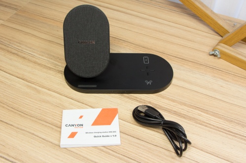 Комплектація В трикутну коробку з картону до Canyon WS-202 користувачу поклали інструкцію та USB Type-C кабель довжиною 1,2 м. Довжина дуже комфортна для підключення навіть до віддаленої розетки. Висновок Прийти додому чи до офісу і просто покласти або поставити смартфон на підставку – звичайна справа. Але якщо при цьому почнеться автоматичне заряджання пристрою – корисність гаджету та придбаної до нього зарядної станції стане по зручності, як мінімум, на ступінь вище. Неможливо переоцінити простоту бездротової зарядки Canyon CNS-WCS202, коли ти можеш підняти трубку, відповісти на дзвінок і покласти пристрій назад, а він без лишніх маніпуляцій з проводами продовжить набирати енергію в свою батарею. Крім того, зарядна станція від Canyon - ідеальний аксесуар біля ліжка. Підставка робить так, що ваш смартфон може стати вашим нічним годинником, і при цьому у власника є можливість підзарядити додатковий пристрій. Чи є щось, що мені не сподобалось? Мабуть лише відсутність блоку живлення у комплектації. Але ж ми його отримуємо разом зі смартфоном, та й не лише Canyon не кладе його до коробки – це звичайна справа для всіх виробників. А от що точно сподобалось, так це відсутність перегріву у смартфонів, з якими я протестував бездротову зарядку, якісне складання та хороша підбірка матеріалів корпусу зарядної станції.