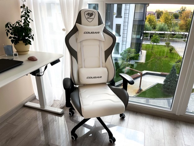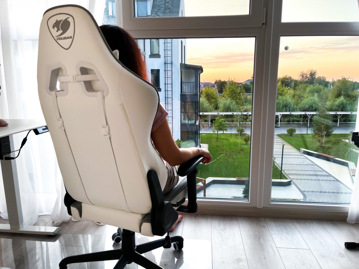 Огляд ігрового крісла Cougar Armor ELITE: «світла» половина твого комфортуДо білого столу Cougar Royal 120 Mossa, що має електричне регулювання висоти, потрібен був відповідний стілець. Вимоги до нього висувались наступні: зручний, красивий, надійний та підходящий по дизайну. У бренду Cougar такий знайшовся - Cougar Armor ELITE White. Всі подробиці про крісло і особливості його трансформації розповідаю у огляді. Комплектація і ЗбіркаПроцес збірки та набір елементів, з яких у вас вийде отримати «робоче» крісло Cougar Armor ELITE, як на картинці нижче, нетривалий і простий. Можете переглянути мій огляд ігрового крісла Cougar Outrider S Black, інструкція і кроки, які потрібно пройти, майже ідентичні. Про всі важливі елементи крісла розповім вже на зібраному Cougar Armor ELITE, інструменти йдуть у комплекті. Дизайн та КорпусCougar Armor ELITE - це стілець, який витримує людей масою до 120 кг, але при цьому сам важить 20 кг і є зручним у переміщенні по локації. Колеса допомагають в цьому. Крісло позиціонується як геймерське, але з іншої сторони може стати корисним і практичним предметом меблів, адже без проблем вписується в світлий інтер’єр. Елементи брендингу присутні, але як і оббивка виконані в сірій кольоровій гамі, тож очі не виїдають. Для когось це може бути і мінус, але тоді дивіться в сторону інших моделей з серії Armor ELITE. Знайдете там не лише помаранчево-чорні, але і модель Armor ELITE EVA з рожевим декором «Barbi стайл». Основа та спинка крісла мають підняті краї, які забезпечують підтримку, але можуть дещо притісняти тих у кого вага за 120 кг. Тож мабуть виробник і зазначив саме таке обмеження. А для всіх інших «ковші» – це пасивний компонент зручності і майбутньої здорової статури, адже утримує користувача у вертикальному положенні. Для тих хто годинами сидить за іграми чи робочими таблицями це має бути важливо. Крісло Cougar Armor ELITE вкрите штучною екошкірою. Покриття намагається імітувати текстуру натуральної шкіри, особливо на основі та спинці. Cougar стверджує, що оббивка крісла дихаюча, але все одно найкомфортніше використовувати крісло за призначенням в приміщенні де температура постійна і не провокує потовиділення. Бажано також одягатись так, щоб при сидінні уникнути прямого контакту з оббивкою. Але ж зауважу, що це правило актуальне для крісел і з ПВХ-шкіри, і з натуральної. Далі детально розгляну основні елементи крісла більш прискіпливо. Основа Cougar Armor ELITEВона складається з двох частин: центральної частини та бокової підтримки. Контурні краї трохи підняті, але не настільки, щоб власник відчував якесь обмеження. Ширина сидіння 545 мм, глибина – 490 мм. Амортизація сидіння не відчувається надмірною, товщина піни до 11 см. На Armor ELITE ви не відчуваєте себе як дивані і для мене це перевага. Більша частина основи сидіння біла, на боках – сіра. Основа візуально розділена на окремі елементи, але без одноманітного ромбовидного малюнка, який був у крісла-софи Cougar Ranger, що я оглядав нещодавно. Знизу під подушкою все красиво. По правій стороні основи сидіння знаходиться багатофункціональний важіль, який відповідає за всі регулювання висоти, а також функцію блокування і розблокування нахилу спинки. Відстань від підлоги до сидіння можна регулювати в діапазоні 360-430 мм, тож крісло підходить підліткам і дорослим, жінкам і чоловікам. Гідравліка Cougar Armor ELITEЗа всі регулювання висоти відповідає металевий газліфтний циліндр класу 4
