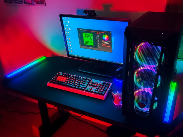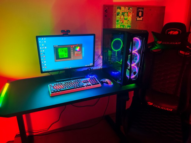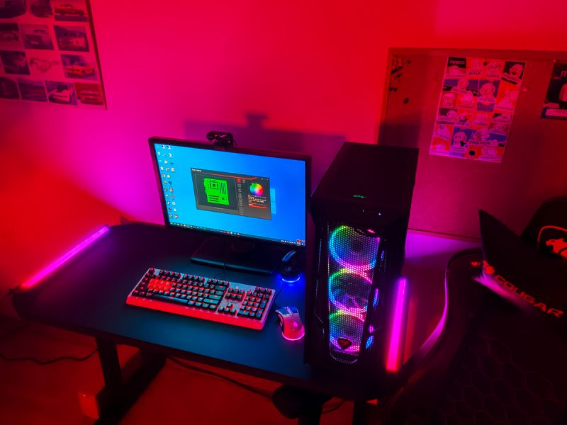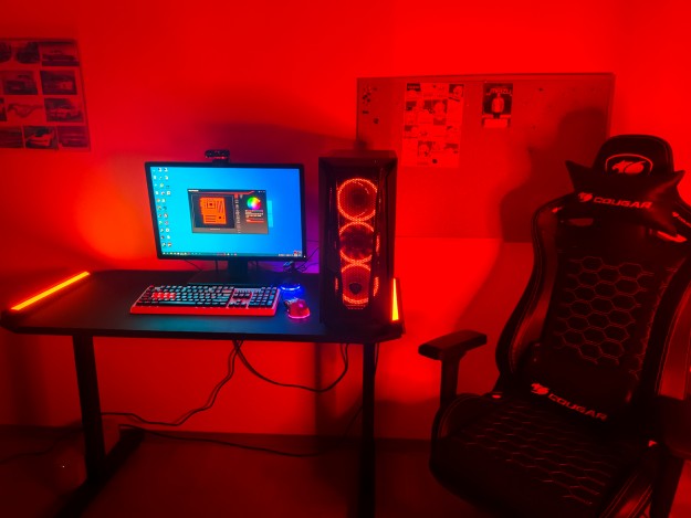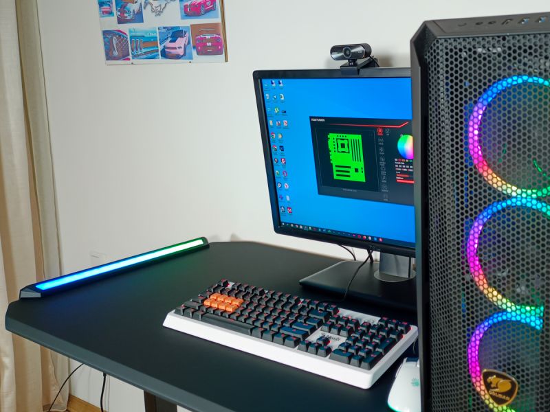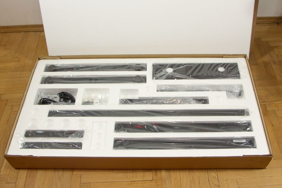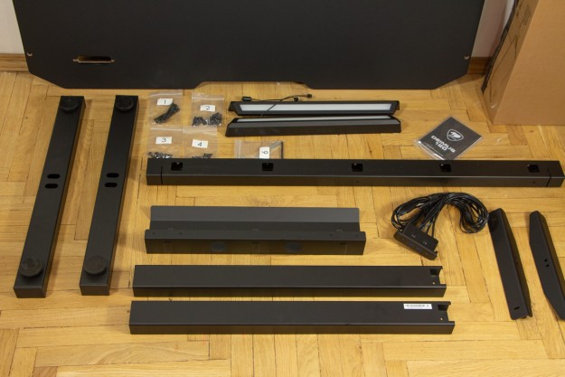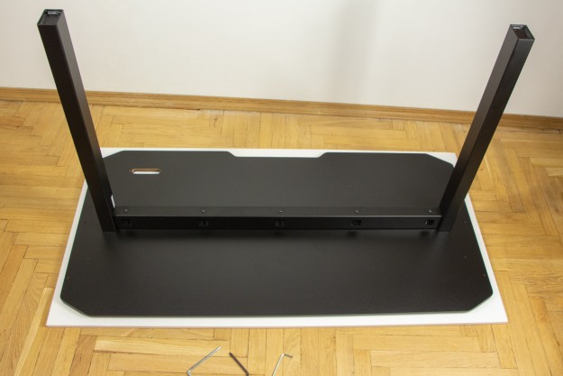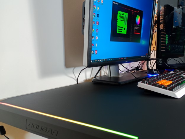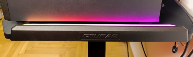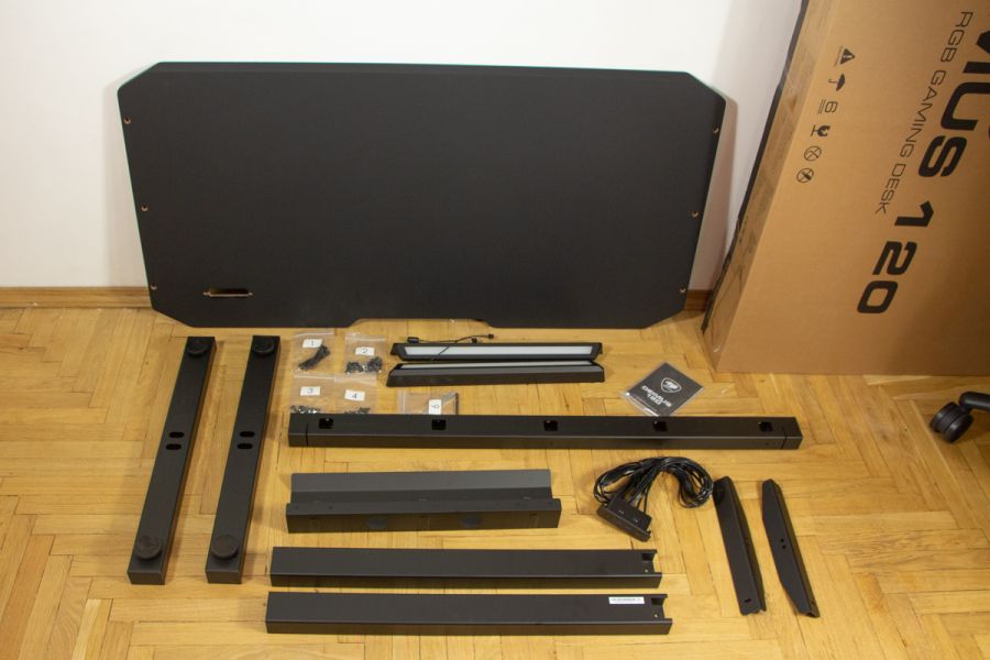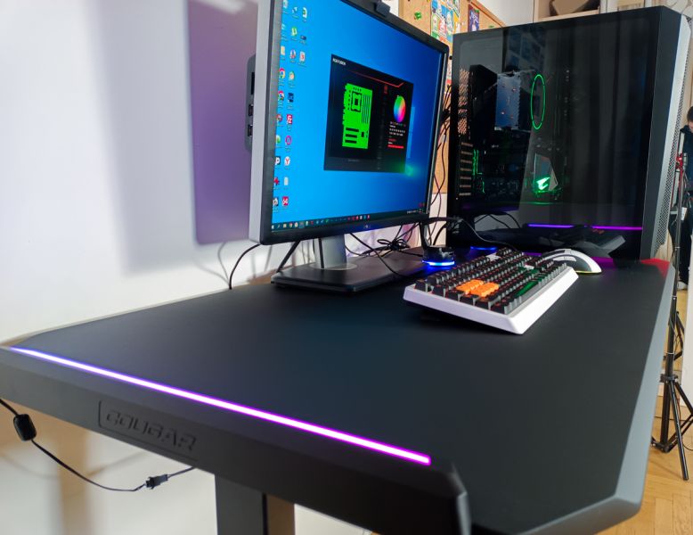 Огляд Cougar DEIMUS 120: стіл в ігровому стилі з RGB підсвіткою та USB хабомКомпанія Cougar дуже любить своїх клієнтів і розуміє, що ігроману важливі деталі та атмосфера. Тому окрім корпусів, гарнітур та ще десятка найменувань з комп’ютерних аксесуарів бренд пропонує ігрові столи. У мене на огляді один з найпростіших - Cougar DEIMUS 120, а для тих кому потрібні моделі побільше та зі стільницею, яка може змінювати висоту – шукайте серію Royal та E-DEIMUS. Подробиці про модель DEIMUS 120 та мої враження від користування нею дізнаєтесь далі. Комплектація Власник Cougar DEIMUS 120 отримує його у розібраному вигляді. Коробка чималих розмірів, вага 28 кг. Всередині два прошарки пінопласту: під верхнім усі деталі, під наступним стільниця. Серед деталей столу користувач отримує інструкцію, набір кріплення та ключі-шестигранники (один з хрестовою викруткою), а також кабель підключення RGB підсвітки до живлення та управління на блоці з USB хабом. По часу збірка зайняла в мене приблизно 20 хвилин у неспішному ритмі. Далі більш детально опишу процес. Збірка Стіл має відносно просту конструкцію і зібрати його одному не складе труднощів. Головне йти по етапам, які містить інструкція. Почав збірку знизу-вгору, основні етапи кріплення спочатку йдуть під стільницею. Вже в самому кінці у звичному положенні стола встановив підсвічування і хаб. Спершу кріпимо до стільниці поздовжній каркас. Ніжки металеві – з них ми складаємо Т-подібну конструкцію. Метал завтовшки близько 2,5-3 мм. Якість зварювання хороша, шви виглядають надійно, більшість з них у прихованих місцях, які не кидаються в око. Метал добре пофарбований матовою чорною фарбою. Повертаюсь до ніг. В кожну вкручено пару прогумованих ніжок. Якщо закручувати їх не повністю, стіл можна зробити вище. Також вони потрібні, щоб вирівняти його по висоті. Конструкція на практиці виходить досить жорсткою. Все через невелику ширини столу - 120 см. Стільниця виконана єдиною деталлю з МДФ товщиною 18 мм. Глибина столу 605 мм, точна ширина – 1220 мм. 2 см додають елементи підсвічування. Ще пара важливих нюансів по стільниці. На задній частині передбачено округлий виріз для спрощення кабель менеджменту. З переду стільниця скошена для зручності рук. З правої сторони, недалеко від задньої кромки, передбачено посадкове місце під хаб із роз'ємами. Кріпимо підсвітку, потім хаб, підключаємо і ставимо на стіл свою збірку. Блоки з підсвічуванням запаковані в корпус з пластику, на боках логотип Cougar. По великому рахунку більше відміток виробника на столі непередбачено. Звертаю увагу, що довжина кабелів у лівого та правого блоку підсвітки різна, тож їх не переплутаєте. Блок із роз'ємами вставляється без застосування сили, він лише трішки виступає над поверхнею. Його надійно фіксують два саморізи та пластикові направляючі. Блок виводить на стільницю клавішу зміни сценаріїв підсвічування, два USB 3.0 та один USB Type-C. Хаб поставили – стіл зібрано, залишилось лише подати живлення щоб його засвітити. Підключення Процес під'єднання столу – це всього лиш необхідність підключення 3х USB-A і одного USB Type-C кабелів. Для живлення підсвітки достатньо всього лиш одного USB-A – крайнього зліва. Я поставив свій системний блок по праву руку на столі, але планую перенести його ліворуч на підвісну полицю в рівень висоти столу. Багато хто скаже, що системний блок логічніше буде поставити під стіл а