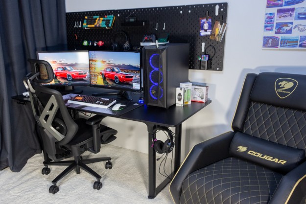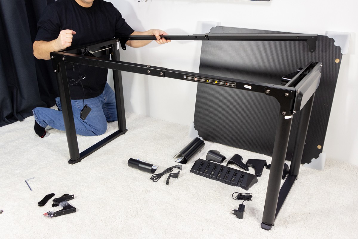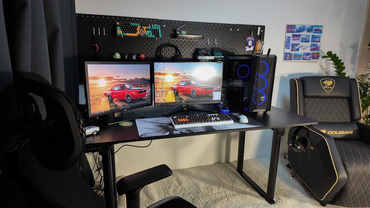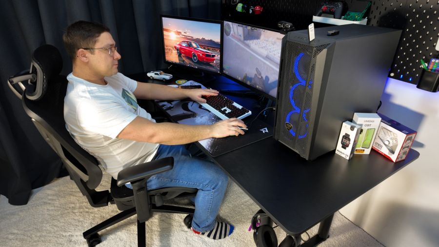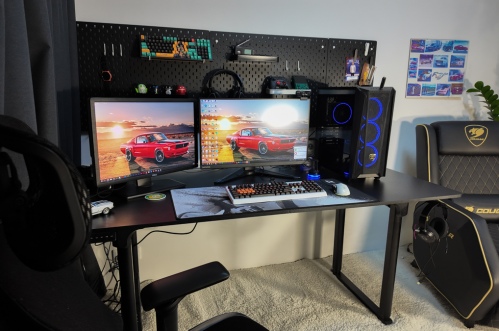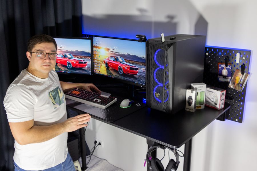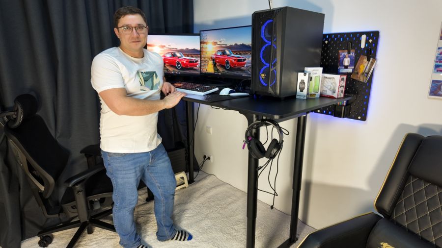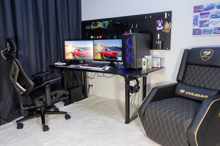 Огляд великого столу з регулюванням висоти Cougar E-Grav 180: працюю і граю по-новомуЯ підібрав собі новий стіл. Вимоги були наступними: зовні сучасний, великий по ширині та глибині, щоб розмістити пару моніторів і системний блок, а також щоб можна було працювати сидячи та стоячи. Під мої вимоги ідеально підійшов стіл з електричним регулюванням висоти Cougar E-Grav 180. Про його конструкцію, основні елементи та додаткові корисні аксесуари в комплекті, а також про мої враження після двох тижнів експлуатації розповідаю в огляді. Збірка Головне, що маю сказати по збірці - все зробив сам, а по часу вклався в пів години. А все тому, що інструкція достатньо деталізована, а стільниця складається з двох однакових частин. Навіть зважаючи на загальну вагу стола в пакуванні в 41 кг, мені не прийшлось підіймати щось надто важке. Конструкція Нижче на фото бачите вже зібраний стіл. Вантажопідйомність конструкції аж 120 кг. Як Cougar це вдалось? Розповідаю поетапно. По-перше, всі деталі в коробці перебувають в індивідуальних упаковках. Це гарантує цілісність і неушкодженість. По-друге, ніжки та каркас металеві. Метал не тонкий, це видно поперековим ребрам на які лягає стільниця. Масивні П-подібні пари ніг мають вал, який вкручується і викручується під час підйому та опускання стола. Пластиковим захисним екраном вали трансмісії закриваються від прямого зорового контакту і потрапляння до нього сторонніх предметів. Ніжки стола монтуються на опори. Вони також металеві і як і все шасі, пофарбовані у чорний колір. До речі, якість фарбування не викликає жодних зауважень. З обох боків опор є регульовані ніжки, які дозволяють компенсувати нерівності підлоги та виставити стіл рівно, без хитання. У моєму випадку це стіл шириною 180 см, але покупець може обрати варіант на 160 см. Глибина стільниці 80 см, а товщина 1,5 см. Матеріал стільниці ДСП з ламінованим покриттям/плівкою з текстурою вуглецевого волокна. Край має такий само малюнок. Місця кріпленні ніг, поперечок та стільниці прикриваємо пластиковими панелями. Як на мене, то виробник все прорахував, щоб стіл виглядав сучасно і стильно. Покриття стільниці більше матове ніж глянсове, але якщо хочете повний мат, то вихід є. Купуючи Cougar E-Grav 180 ви навіть трохи економите, бо комплектом передбачено якісний килимок на всю робочу поверхню. Він чорний, лише з одного краю на ньому помаранчеве лого виробника. Підйом і опускання столу здійснюється за допомогою двох електроприводів. Блок живлення має напругу 29 В і розміщений на вилці. Електроприводи з’єднані кабелем, який прокладається під столом, комплектом передбачені кріплення та отвори під саморізи. Додатково під стільницею підготовлені отвори для кріплення лотка для кабель-менеджменту. Отвори дублюються симетрично, що не впливає на те, якою стороною до себе ви поставите стіл. Це стосується і отворів для кріплення гачка для гарнітури. Фінальний етап збірки - встановлення пульта, за допомогою якого ми регулюватимемо висоту стільниці. Пульт максимально простий, легкий у встановленні та зручний у використанні. Під столом передбачено дірки для встановлення пульта зі всіх країв стільниці, кожен обере собі найзручніший. Причому пульт можна встановити в одній площині з краєм столу або як я - виніс його вперед. Два тижні з Cougar E-Grav 180 Стіл зібрав, до нього підібрав новий стілець Cougar Speeder, про який р