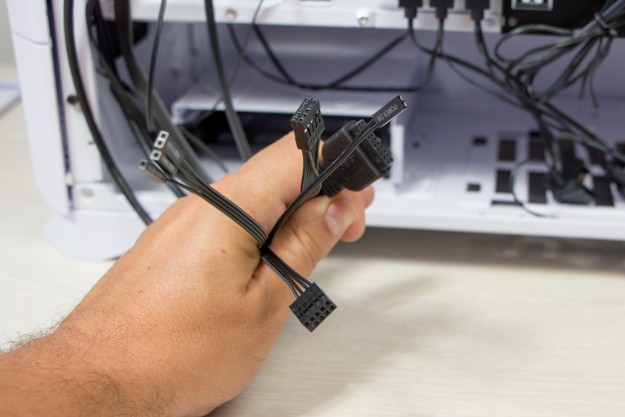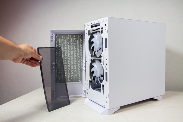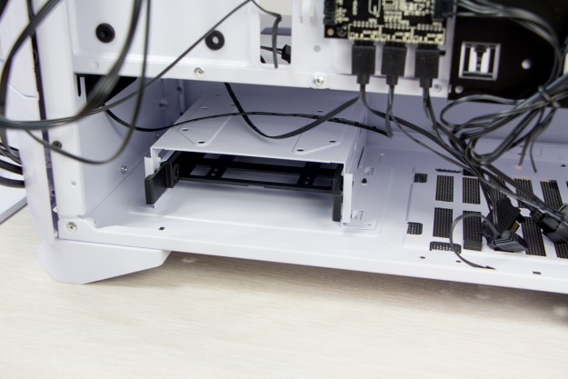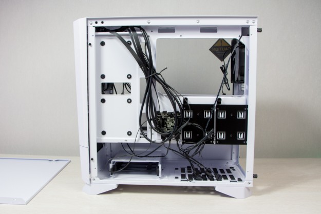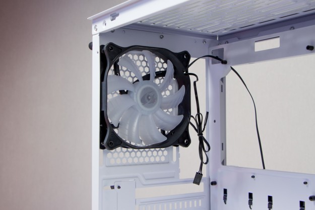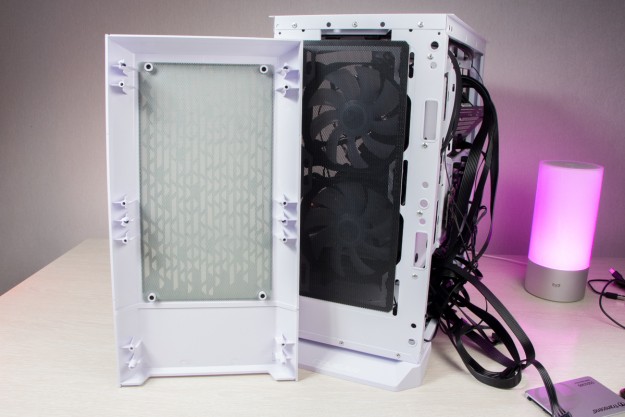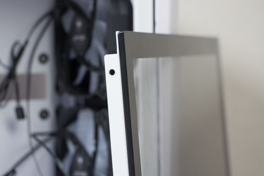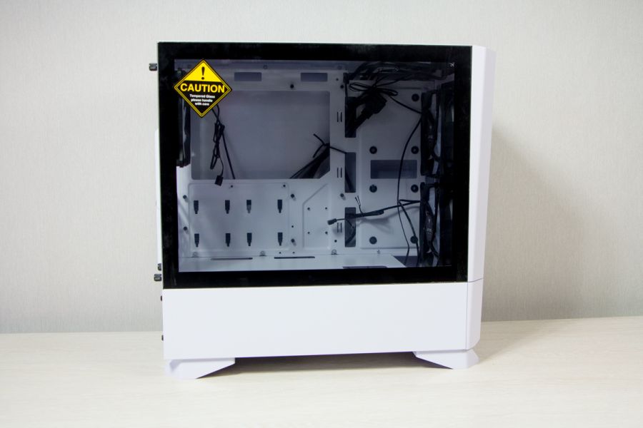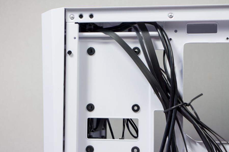 Позаду достатньо гачків для кріплення стяжок, тому, проявивши трохи творчості та терпіння, можна успішно уникнути безладу з кабелями. Після включення спалахують три встановлені вентилятори. Індикатор живлення зверху також повідомляє, що ваша система запущена та працює справно. Оскільки у верхній частині корпусу є клавіша перемикання підсвічування, можна швидко та зручно перемикатися між звичайним набором кольорів, а також кількома привабливими анімаціями. Під час підготовки тесту вимірював температуру всередині корпусу. Використовувалися штатні налаштування вентиляторів. Виходу показників за межі «розумних» не спостерігав. Висновки Cougar MG140 AIR RGB – цікавий корпус, який добре виглядає зовні та продуманий всередині. Погоджуся, що дизайн не для кожного та й колір не всім підійде. Але у Cougar є й чорний варіант. Однозначний плюс – три вентилятори ARGB на 120 мм вже в комплекті, а також контролер ARGB, до якого можна підключити додаткові елементи. Готову збірку можна зробити дуже яскравою. З точки зору ціни, модель MG140 AIR RGB не злякає і не здивує. На мою думку, за $100 покупець отримує достатньо: якість складання, прозору панель із загартованого скла та вентилятори з підсвічуванням, за які не потрібно доплачувати.