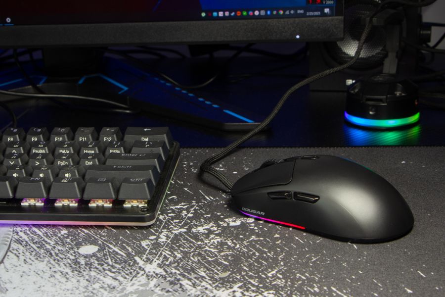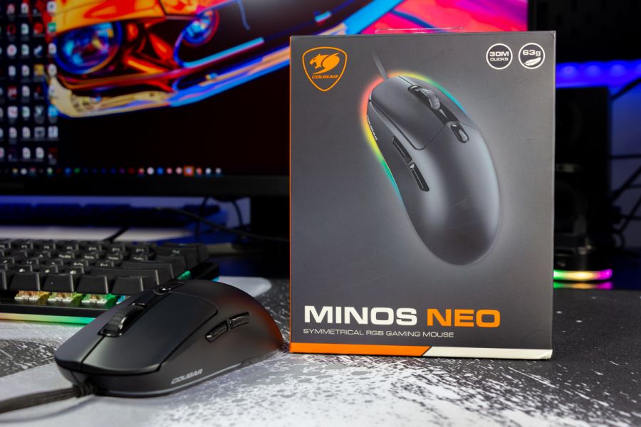 Огляд миші Cougar Minos Neo: швидкий сенсор і RGB підсвітка у легкому корпусіCougar Minos Neo - компактна миша без яскравих логотипів, але з ігровим “серцем” і можливістю активації RGB підсвітки. Корпус цікавий своєю симетрією, перемикачі ресурсом в 30 млн натискань, а сенсор цифрою максимального dpi - 6200, і частотою 1000 Гц. Протестував мишу в офісних і ігрових сценаріях і далі в огляді ділюсь своїми враженнями. Комплектація та упаковка Разом з мишею Cougar Minos Neo покупець отримує лише інструкцію, яка доступно пояснює, як перемикається DPI та режими RGB підсвічування. Що до пакування, то це коробка з картону у стандартних для бренду кольорах і інформацією про можливості сенсора. Дизайн та зручність Симетрична конструкція цієї миші – безсумнівна перевага, яка сподобається багатьом користувачам. Такий дизайн дозволяє охопити ширшу аудиторію, включаючи як правшів, так і лівшів, що робить пристрій універсальним у своєму ціновому сегменті. Адаптація до форми відбувається швидко та без дискомфорту. Миша, якою я користувався до Cougar Minos Neo, була на відсотків 10-15% більшою. На собі перевірив - перехід на новинку пройшов без проблем. RGB-підсвічування не є головною фішкою моделі, проте його стильне оформлення гармонійно доповнює загальний вигляд миші. Матеріали та збірка Корпус Cougar Minos Neo виготовлено з чорного пластику, доповнений кількома білими тефлоновими ніжками і ледве видимим логотипом з боку. Вага миші без кабелю - 63 г, габарити 125 x 63.5 x 40.5 мм. Гумове покриття - вдалий вибір для колеса прокрутки. На ньому передбачили виступаючі гумові шипи, що додатково покращують зчеплення. Над колесом розташована кнопка зміни DPI. Натискається вона з невеликим зусиллям, тож випадкових спрацювань не буде. Великі ліва та права кнопки працюють чітко та безпомилково як в офісних програмах, так і в іграх. Заявлений виробником ресурс перемикачів - 30 млн натискань. Кнопки "Вперед" і "Назад" традиційно розміщені зліва. Гучність натискання на всі кнопки можу назвати помірною. Матовий пластик зверху, на боках та на кнопках однаково чіпкий та забезпечує не лише надійний хват, а й комфортне переміщення миші під час активного використання. На нижній панелі миші знаходяться три великі тефлонові ніжки, а також віконце оптичного сенсора. Підсвітка реалізована у вигляді пари тонких ліній, які розділяє кабель підключення попереду. Фактично маємо одну зону підсвічування. Кабель обгорнутий у тканинне обплетення, яке не щільно прилягає до проводу. Такий підхід мінімізує ризик переломів та запобігає сплутуванню. Додатковою перевагою є феритовий фільтр для захисту від електромагнітних перешкод. Довжина кабелю становить 180 см. Якість збірки на високому рівні — немає жодних недоліків, які могли б викликати занепокоєння у користувача. Всі елементи з’єднані між собою дуже акуратно. Підсвічування RGB-підсвічування на одну зону. Одразу відмічу, що його можна відключити. Натискаючи на колесо та на першу бокову клавішу можна обрати один з п’яти режимів підсвітки: