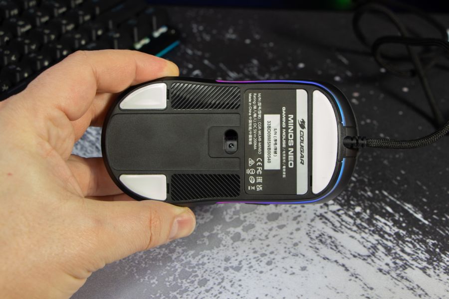 Візуально підсвітка виглядає скромно, але стильно. Сенсор Для Minos Neo виробник обрав сенсор PixArt PAW 3327. Він забезпечує достатньо високий DPI, а значить точне відстеження, та миттєву реакцію на дії користувача, що робить його достойним вибором для геймінгу. Технічні характеристики сенсора миші Cougar Minos Neo: