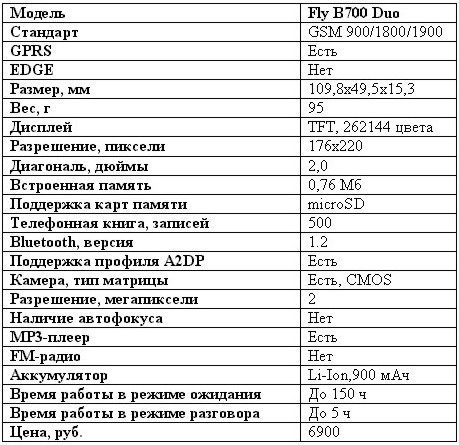 Наряду с Samsung D880 DuoS пальма первенства по массовому выходу на рынок принадлежит еще одному дуальному решению – модели Fly B700 Duo. В отличие от корейского аппарата, телефон представляет собой недорогой моноблок без излишеств, предлагающий пользователю главное - возможность одновременной работы с двумя SIM-картами.