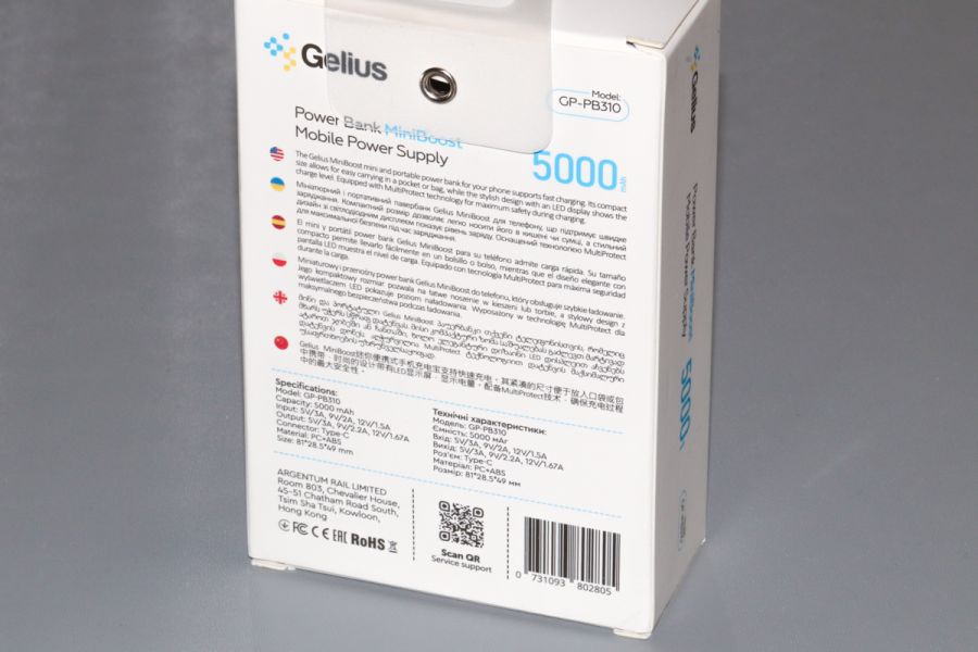 Огляд повербанка Gelius MiniBoost GP-PB310 - під'єднав і забувНеординарна модель, що створена спеціально для того, щоб зробити підзарядку вашого смартфона (і не тільки) «на ходу» максимально зручною. Крім того, ця «манюня навчена» заряджати на швидкості до 22.5 Вт, може виконувати підзарядку двох гаджетів одночасно, а ще прикольно виглядає. Та головне тут – зручність. То ж акцентуємося на ній, але поряд з тим, ділимося враженням від інших особливостей моделі! Упаковка та комплект поставки Gelius MiniBoost GP-PB310 постачається в компактній картонній коробці молочного відтінку. Сам стиль дизайну вже знайомий нам з оглядів інших рішень виробника – згаданий молочний відтінок стінок, доповнений червоним, жовтим, блакитним та іншими кольорами. Є також досить деталізована ілюстрація виробу, чимала кількість технічної інформації, включаючи паспорт кількома мовами та ін. важливі дані. Нижче на фото деталізація сказаного. Що ж до комплекту поставки, всередині коробки, крім, звісно ж самого виробу, користувача чекає кабель USB/USB Type-C, посібник користувача + ремінець на руку. Останній в Gelius MiniBoost GP-PB310 пропонується використовувати для зручності та водночас безпеки роботи з повербанком. Ключові технічні характеристики
