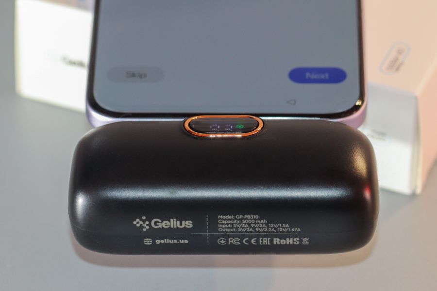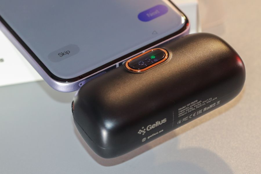 Дизайн, використані матеріали та якість збірки Почнемо з того, що зовнішність Gelius MiniBoost GP-PB310 на корні «ламає» наше уявлення щодо дизайну виробу. Потрібно було зробити саме так, щоб не заважав під час руху та стабільно тримався під час невеликих, скажімо так, потрясінь. Чи вдалося досягти задуманого? Особисто ми за підсумками тестування, вважаємо, що так, вдалося. Якщо у вас інші враження, тоді чекаємо аргументів в коментарях під оглядом. Це перше і головне, чим вас зацікавить Gelius MiniBoost GP-PB310. Щодо використаних матеріалів корпусу, тут маємо матовий пластик чорного кольору. Корпус складається з двох рівновеликих половинок – характерний шов легко помітити по периметру. Металева, скажімо так, «група» це вилка та окантування інтерфейсів USB — C + тонке окантування дисплея. Сам дисплей, до речі, прикрито пластиком. До збірки питань жодних – вдале припасування елементів між собою, чудова фіксація, словом, будете задоволені. Стосовно ж зносостійкості використаного матеріалу, тут питання відкрите, оскільки тестування його потребує більше часу. І хоча наші 2 тестові неділі відверто слабких «ланок» в цьому плані не виявили, все ж ми не виключаємо, що сумочка з ощадливої тканини для Gelius MiniBoost GP-PB310 зайвою не буде. Ергономіка – ключові тези В цьому плані все достатньо просто. Перше, що варте уваги – підтримка Gelius MiniBoost GP-PB310 одночасної підзарядки акумуляторів двох гаджетів. Наскільки вагомим є такий аргумент, зважаючи на позиціювання виробу, сказати важко, але тим не менш, дана особливість реалізована. Таким чином робимо відповідний висновок щодо зворотної сумісності одного з наявних тут портів. Що особисто нам сподобалось ще – наявність дисплея «на борту». Так, незважаючи на компактність та більш ніж доступну вартість, дисплей в підсумку тут це вагома зручність, адже дозволяє більш точно отримати дані про поточний рівень заряду повербанку. Нагадаємо – по периметру у нього металеве окантування, а сам екран прикрили пластиком. Єдина апаратна кнопка зверху поряд вилки Type-C «дозволить» вам дізнатися за поточний рівень заряду. На «боковушках» справа та зліва маємо відповідно петлю кріплення згаданого вище шнурка та ще один порт USB Type-C. Нарешті, нижня панель – це кілька стрічок технічних даних, зокрема параметри портів. Крім того, тут же логотип виробника, маркування, адреса офіційного сайту та ін. Враження від тестування А тепер час поговорити про головне – зручність та швидкість. Чому Gelius MiniBoost GP-PB310 – це дійсно вибір для підзарядки «на ходу». Насправді все просто, і «секрет успіху» на поверхні – вдалі в цьому плані габарити + формфактор. В підсумку GP-PB310 легко та зручно підключається до смартфона, планшета, електронної книги та інших мобільних пристроїв, що підтримують підзарядку від мобільного акумулятора або ж повербанка – як кому зручніше називати. Кабель, як посередник тут не використовується – і це ще один додатковий плюс. Третій – надійність – мимовільного відключення не відбувається ні під час розмови телефоном, ні перегляду відео з планшета. Словом, в цьому плані можна не перейматися! Щодо швидкості, то заявлені до 22,5Вт тут для не для галочки, заряд того ж OPPO A58 з 50% поточного рівня до «сотні» влетів за 50 хвилин, що, на наш погляд, ну дуже непоганий результат. Трішки більше години знадобилося Gelius MiniBoost GP-PB310 для відновлення заряду за допомогою