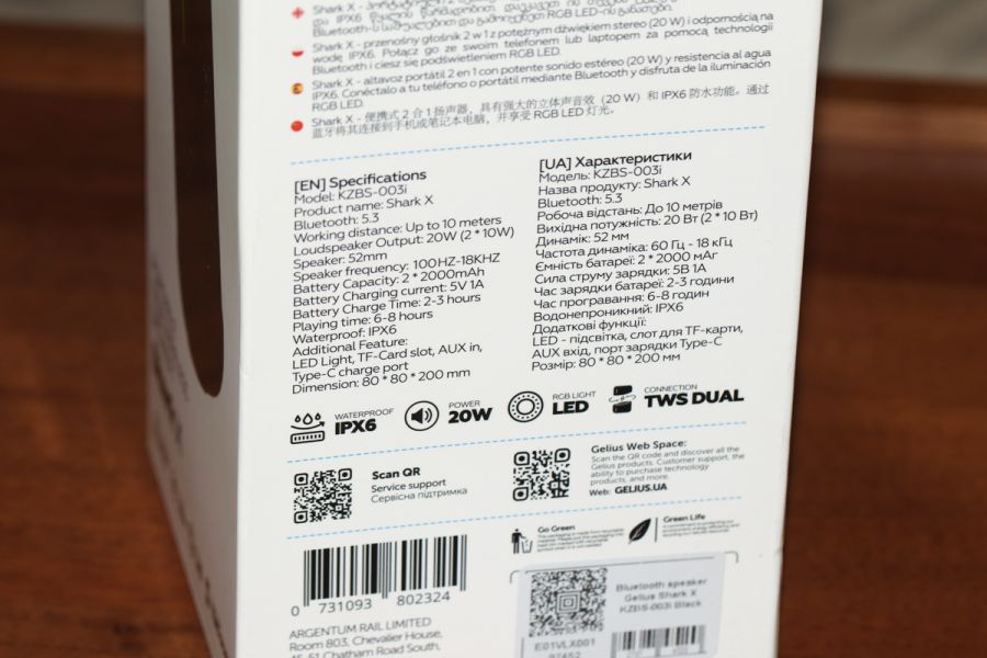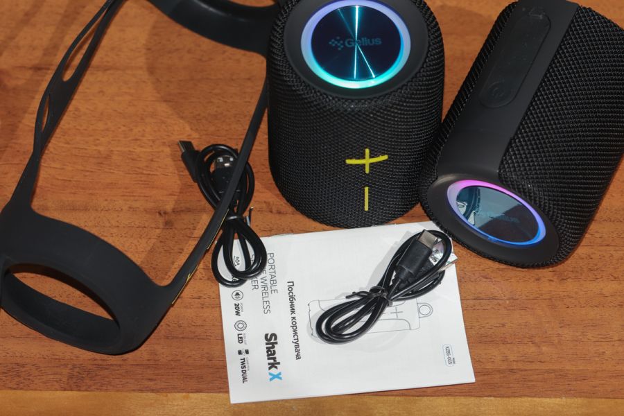 Дизайн, використані матеріали та якість збірки «Законодавець моди» в сегменті зовнішніх колонок в захисному корпусі компанія Logitech свого часу зробила дійсно революційне рішення, яке поклало початок абсолютно новому напрямку. Автор цих стрічок відвідавши відповідну презентацію тоді новинок в Києві, був ну дуже приємно вражений тим, що запропонував виробник. «Послідовників буде багато», - сказав я собі за підсумками. Зроблений прогноз виправдався на всі 100%. Проте, чи не кожна компанія (принаймні з когорти тих, продукцію котрих я бачив особисто) в ці свої вироби вносила особисту лепту досягнень, розумінь, напрацювань та загалом фантазії. Один з тих прикладів, який вийшов в підсумку, ми й розглядаємо в цьому огляді. Gelius Shark X KZBS-003i – це перш за все можливість «створити» з однієї колонки дві «напівколонки». В підсумку отримуємо більший об’єм вже на базі однієї колонки (а згадайте, яку альтернативу тут пропонувала Logitech!). Просторове звучання по TWS-технології - будьте впевнені – це вам обов’язково сподобається. Далі – підсвітка. Так, вона не налаштовується користувачем «під себе», її неможливо вимкнути, але й навіщо, адже гарна музика, доповнена приємною підсвіткою здатна створити відповідний настрій чи не краще інших альтернатив. Можливість підключити кожну колонку до окремого джерела звуку, програвати з карти пам’яті, регулювати звук та багато іншого. В підсумку, по суті, це дві колонки для об’ємного просторового звуку, або одна, якщо ви, наприклад, десь в компанії на природі чи їдете велосипедом (іншим транспортом) і так далі; дві зручно для об’ємності, одна – транспортування. Вибір є – далі справа обставин та особистих бажань. Незалежно від формату використання, Gelius Shark X KZBS-003i захищена за стандартом IPx6, а тому навіть помітно сильні струмені води з будь-якого напрямку виробу не зашкодять. Звичайно, за умови, якщо наявні «на борту» порти будуть закриті гумовими заслінками. До речі, за гуму. Крім заслінок, з неї тут виробник зробив кнопки регулювання гучності, увімкнення/вимкнення живлення та ін. Також маємо знімний гумовий бампер з петлею. Останній зі згаданих аксесуарів – зручна річ, якщо ви вирішили підвісити колонку. Втім, лиш згаданим потенційні сценарії використання, звісно ж, не обмежуються. Крім гуми, ще «на борту» багато міцного пластику, а також сітка. Останньою вдало обплели корпус, тоді як пластиковим виявився каркас та деякі інші елементи. Що ж, формат вдалий і має місце бути. Стосовно металу, з нього зовні окантування інтерфейсів, слотів microSD та ін. «дрібнички». Щодо якості збірки, тут претензій жодних, навіть, якщо колонка «поділена» на дві «половинки»; дійсно якісне припасування вартої уваги компонентної бази. Ергономіка Хоча Gelius Shark X KZBS-003i – це передусім бездротова колонка, кабельне підключення до джерела звуку тут також передбачено, що, як на мене, плюс! Таке підключення доступно на кожній «півколонці» окремо. Єдиний нюанс (якщо можна так сказати) – відповідні кабелі вам доведеться придбати окремо, адже класичним комплектом поставки вони не передбачені. Та навряд чи це буде проблемою. Живлення в обох половинках нашого «музичного центру» своє – акумулятор + відповідна кнопка увімкнення/вимкнення. Також своє на кожній «півколонці» регулювання гучності – відповідні кнопки не помітити не можливо + вбудовані МР3-плеєри. П