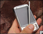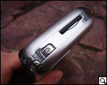 На верхнем торце устройства расположен слот для карт расширения памяти, а также кнопка включения/выключения питания аппарата. ![]() Всевозможные коммуникационные разъемы в устройстве сосредоточены на нижнем аппаратном торце: 2.5 мм разъем для проводной стереогарнитуры, маленький разъем микрофона, разъем для синхронизации аппарата с компьютером или другим мобильным устройством, кнопка мягкой перезагрузки устройства. Разъем в форме ушка для страховочного шнурка размещен на левом нижнем торце HP iPAQ rw 6815. ![]() Вся система бокового управления гаджетом сводится к наличию инфракрасного порта, кнопки активации приложения голосовых заметок, а также совмещенной клавиши активации фото/видеокамеры на правой боковой грани, а также клавише-качельке – на левой. ![]() ![]()