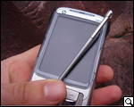 В гаджете HP iPAQ rw 6815 при хорошем оснащении, как в коммуникационном, так и развлекательном ряде представлены весьма скромные габариты устройства (достигнутые, впрочем, по причине отсутствия клавиатуры), что позволяет ему выгодно выделяться на фоне собратьев по линейке. Внешний вид ![]() ![]() Еще одна интересная деталь аппарата – защитная крышка, которая прикрывает сенсорный экрана аппарата. С одной стороны это очень хорошее решение производителя, поскольку позволяет всячески защитить экран от внешнего воздействия различных физических источников. Обратной стороной этого является весьма неудобный способ вынимания стилуса, который, в свою очередь располагается на одной из верхних граней устройства. ![]() Но вернемся к экрану. Как уже было сказано, в устройстве дисплей сенсорный, а потому производитель "возложил" на него практически всю навигацию. В гаджете дисплей занимает около 80% передней стороны аппарата. Процентов 15 под ним отдано под софт-кнопки и кнопку джойстика с кнопкой подтверждения внутри, а также динамиками громкой связи, с правой и левой стороны клавиш навигации. Остальные 5% отведены внутреннему динамику аппарата, "возвышенному" над экраном устройства. Рядом с ним расположен индикатор. ![]() ![]() На тыльной стороне устройства встроенная камера с 2-х мегапиксельным сенсором и большим глазиком вспышки. Рядом с этим "дуэтом" находится фирменная эмблема компании-производителя, а чуть ниже всего этого – крышка аккумуляторного блока.