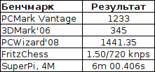 Производительность и энергопотреблениеУтилита CPUZ 1.50 честно призналась, что не догадывается о марке процессора, указав только, что принадлежит он к семейству Athlon64. Зато самая свежая версия 1.51 распознала, что перед нами одноядерный Athlon Neo с частотой 1,6 ГГц и кэшем второго уровня в скромные 512 Кб. Напряжение на CPU составляет всего 1 вольт, хотя изготовлен он по техпроцессу в 65 нм. CULV-решения от Intel выглядят более привлекательно. Приведу пример. Процессор Core 2 Solo U3500 обладает кэшем 2-го уровня в 3 Мб и построен по 45-нанометровой технологии. Он имеет более низкую частоту 1,4 ГГц, но по производительности опережает Athlon Neo примерно на треть. ![]() Видеокарта в Pavilion dv2 интегрированная. Это ATI Radeon X1270 с 128 Мб RAM на борту. Особой производительностью этот ускоритель не обладает, но и потребляет не очень много. HD-фильмы 720p смотреть можно, но не более того. ![]() Посмотрим на результаты тестирования и сравним их с теми, которые были получены на MSI X-Slim 340. SuperPi был добавлен исключительно из академического интереса =) ![]() ![]() По мнению Windows Vista производительность Pavilion dv2 ниже. По субъективным ощущениям это истинная правда. Vista не очень комфортно чувствует себя на этом ноутбуке и периодически подвисает на несколько секунд. Разумнее было бы поставить Windows XP или "семёрку". В целом же производительность находится на приемлемом уровне. Время автономной работы составило 1,5 часа в режиме повышенной нагрузки и чуть более 4,5 часов в режиме веб-сёрфинга и работы в MS Office. Яркость экрана составляла 50%, а беспроводной адаптер был включен. Очень неплохие результаты! К сожалению, нижняя поверхность ноутбука довольно быстро нагревается. Это неудивительно, так как температура процессора при максимальной нагрузке достигала 72°C. В обычном режиме она колебалась около отметки в 50°C. Система охлаждения не досаждала своим шумом. Для меня важнее тишина, чем температура. Тем более что ноутбук в любом случае можно совершенно спокойно держать на коленях. ![]() ВыводHP Pavilion dv2 обладает красивым глянцевым корпусом, отличной клавиатурой и неплохим экраном. Производительность и время автономной работы более-менее терпимые. В целом, ноутбук оставил от себя приятные впечатления. Претензий всего три: тачпад, маркость корпуса и большой для таких размеров вес. Стоит эта модель ноутбука (dv2-1020er) от 22000 рублей. Рекомендуется в качестве высокотехнологичного подарка даме. Автор: Игорь Осколков Источник: Computerra.ru