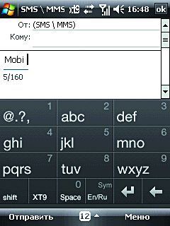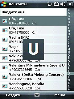 В адресной книге появилась боковая панель с алфавитом. Язык зависит от прошивки, и сменить его, к сожалению, нельзя. Например, в коммуникаторе, сертифицированном для продажи в России, эта панель будет состоять из букв кириллицы. Проведите по панели пальцем — буквы будут выделяться одна за другой. На любой букве можно остановиться — тогда курсор списка контактов сразу окажется там. Аналогично быстрый переход по адресной книге организован в Apple iPhone. Правда, в этом телефоне это единственный способ навигации по телефонному справочнику, а в HTC Touch Cruise доступен стандартный метод поиска с помощью виртуальной клавиатуры.