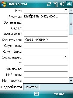 Номерная база телефонов пользователя. Во время записи нового контакта, при условии его сохранения в память телефона, пользователь получает в свое распоряжение до 30 полей.
