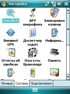 Другой негативной особенностью является несколько неудачная состыковка непосредственно экрана и обрамляющего его элемента. В HTC TyTN II состыковочная часть идет не равномерно вниз к экрану, а как бы строго перпендикулярно и даже углубляясь внутрь, что способствует забиванию пыли на отрезке экрана с состыковочной частью. А оттуда ее весьма и весьма непросто чистить. Потому здесь не будет лишним дать будущему пользователю небольшой совет не носить коммуникатор без специального чехла, и даже дома или в офисе не оставлять гаджет без него. Впрочем, этот нюанс производитель учитывает, поскольку в комплекте поставки учтена сумка для гаджета.