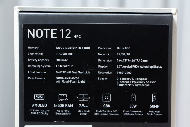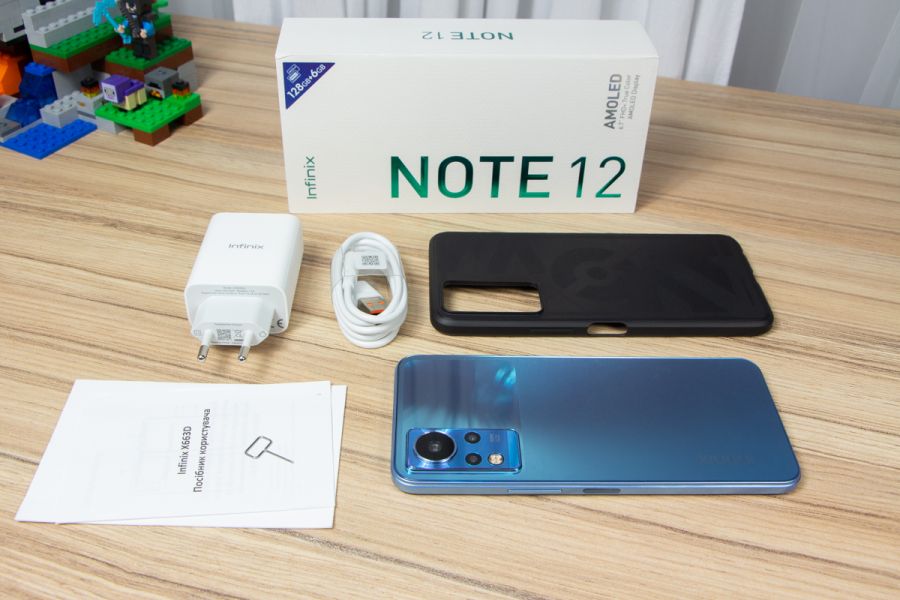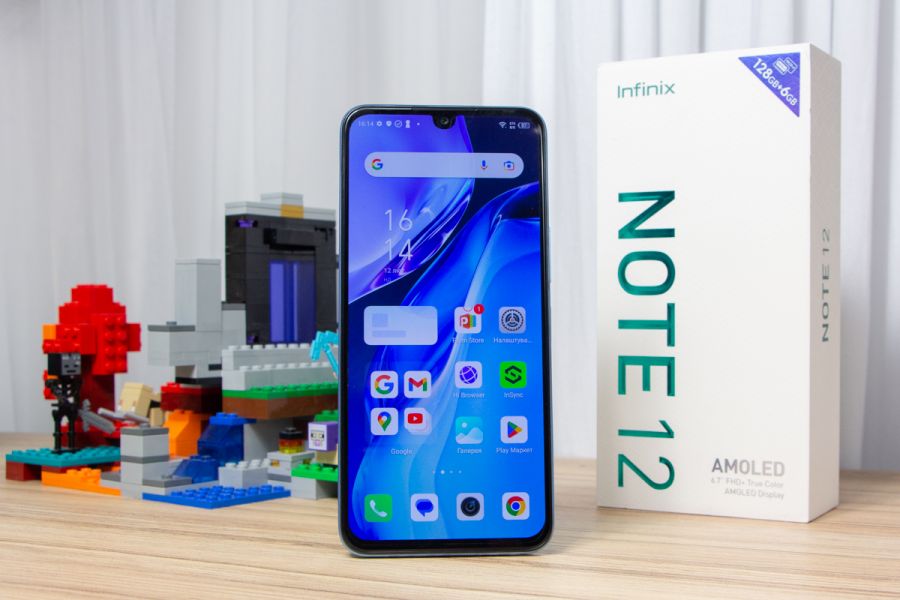 Огляд смартфона Infinix Note 12: виправдано яскравий дизайн та хороша основна камера на 50 мегапікселівInfinix Note - одна з найпопулярніших серій смартфонів бренду, яку обирають покупці в Україні. Такі висновки роблю по тому, що зустрічаю в руках у користувачів та кількістю відгуків у мережі інтернет. Причому покупцям пристрої подобаються, а значить мій огляд буде корисним для тих, хто лише задумався про оновлення свого смартфону та має обмежений бюджет у 8000-9000 грн. Подробиці про Infinix Note 12 з процесором Helio G88, AMOLED FullHD+ екраном на 6,7 дюйма, батареєю на 5000 мАг з зарядним на 33 Вт та основною камерою 50 Мпікс. розповідаю далі. Комплектація Infinix Note 12 укомплектований у білу коробку, яка своїми яскравими написами розкриває майже всі «секрети» його характеристик. Всередині можна знайти смартфон, чорний захисний бампер з силікону, зарядний адаптер з параметрами 10В/3.3А, кабель USB-USB Type-C, документацію і інструмент для вилучення лотка під SIM картку. Одразу відмічу, що користувач може встановити дві nanoSIM та додатково карту microSD. Щодо чохла, то він незвично цікавий, як для комплектного. По-перше, аксесуар чорного кольору. По-друге, на ньому присутній напис NOW по всій довжині. Це відсилання до слогану бренда - "The Future Is Now". Чохол приємний на дотик, матеріал стійкий до подряпин, але аксесуар закриває майже всю красу блакитного корпусу. Дизайн та Корпус Смартфон Infinix Note 12 отримав двоколірний дизайн. Матеріал зі всіх сторін – пластик. Блакитне покриття матове знизу тилової панелі та на боках, а зверху глянсове, майже дзеркальне. Як на мене, то виглядає телефон дорого. Тилова панель віддана під об'єктив 50 Мпікс., 2 Мпікс. та QVGA камери, які рознесені за окремими вирізами, але розміщені на одному п’єдесталі. Світлодіодний спалах круглий та складається з 4-х діодів, для нічних знімків зблизька його вистачає з запасом. Зовні Note 12 цікавий невеликими габаритами при великому дисплеї. Розміри 164.43 x 76.66 x 7.9 мм, вага 184.5 г. Конструкція продумана, тому є можливість керувати пристроєм однією рукою. Рамки навколо екрану не мінімальні, але для середнього розміру чоловічої руки зручно. У нашому випадку смартфон блакитний. Вибір забарвлень доступний додатково між чорним та золотим. Верхню частину лицьової панелі віддано під об'єктив 16 Мпікс. камери, вписаної в дисплей в каплевидний виріз, розмовний динамік, який розмістили на стику з торцем. Там же розміщені датчики освітлення та наближення. З цікавого над дисплеєм – фронтальний спалах. Клавіші живлення та регулювання звуку облаштовані праворуч та мають виразний відгук. Розташовані вони зручно, під великий палець. Сканер відбитка пальців працює швидко та коректно, він вмонтований в кнопку живлення. На нижньому торці смартфона знаходиться проріз мультимедійного динаміка, порт Type-C, мікрофон та 3.5 мм аудіовихід під навушники. Note 12 зібраний добре. Кришка нез’ємна. Слот для SIM карти зліва на торці. Підсумовуючи зовнішність і матеріали корпусу Infinix Note 12 можу сказати, що смартфон красивий, але з чохлом, який приховує майже всю його красу, я б його не носив. Дисплей Note 12 комплектується екраном на 6.7-дюйми з роздільною здатністю 1080х2400 пікселів. Це формат FullHD+ із співвідношенням сторін 20:9. Для своїх розмірів дисплей показує хорошу картинку завдяки матриці AMOLED і піковій яскравості в 1000 ніт. Доналаштувати зображення можна додатково через меню параметрів. Ту
