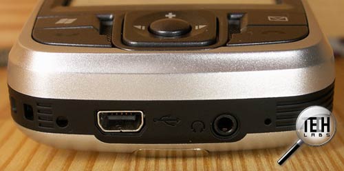 Чуть выше нашло для себя место окошко ИК-порта. На нижней грани "нашего героя" слева направо находятся следующие функциональные элементы: отверстие для микрофона, 2.5 мм-разъем для наушников или гарнитуры, интерфейсный разъем mini-USB для подключения к ПК и отверстие для "мягкой перезагрузки".