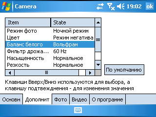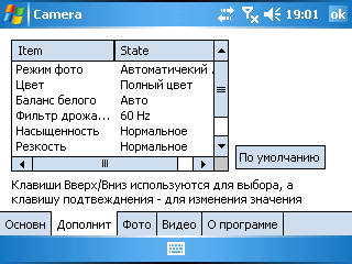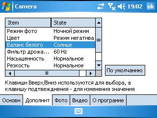 КамераНеизменным атрибутом современного коммуникатора, рассчитанного на индивидуального пользователя, а не на корпоративный рынок, является встроенная камера. Не стал исключением и наш герой. Orsio n725 может похвастаться наличием цифровой камеры, CMOS-матрица которой имеет физическое разрешение 2 мегапикселя. Исходя из этого, нетрудно догадаться, что максимальное разрешение снимков при этом составляет 1600x1200 точек. Кроме того, также доступны режимы съемки фотографий с разрешением 1024x768 точек, 640x480 точек, 320x240 точек и 176x144 точки. Активируется камера при нажатии на кнопку, находящуюся на правом торце коммуникатора. После ее запуска вся рабочая область экрана выступает в роли видоискателя, при этом изображение переводится в ландшафтный режим работы. Во время съемки на дисплее отображается много служебной информации: текущее разрешение, режим работы камеры и вспышки и т.д. После получения кадра его можно сразу же переслать на любое другое устройство с помощью интерфейсов беспроводной связи или по почте, а также просто удалить. Спуск затвора осуществляется при нажатии на центральную кнопку джойстика или на кнопку с логотипом "Камера" (та самая, что на правом торце аппарата). Нельзя сказать, что камера отличается большой скоростью работы: этот показатель находится, скорее, на среднем для устройств подобного класса показателе. Благодаря достаточно обширным настройкам, пользователь может сам повлиять на процесс съемки. При этом в распоряжении "папарацци" оказываются установки режима работы камеры, цветности, баланса белого, а также насыщенности и резкости кадра. Также можно задать уровень сжатия картинки, место для сохранения и способ генерации имени файла (время/дата, номер кадра). Что же касается видео, то его максимальное разрешение составляет 320х240 пикселей. Доступно и "народное" 172х220. Впрочем, что там рассказывать – все доступные настройки камеры прекрасно иллюстрируют приведенные ниже скриншоты.