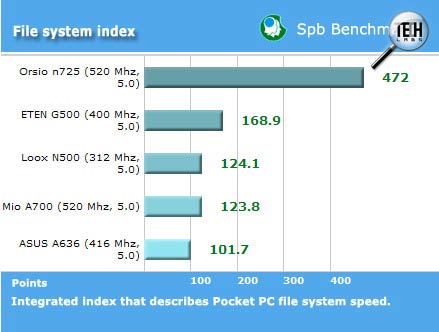 Так и есть. Рекордная для WM 5.0 коммуникаторов скорость работы файловой подсистемы! Все конкуренты остаются позади.