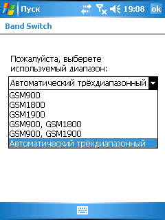 Выбор диапазона. Утилита позволяет вручную установить GSM-диапазон.