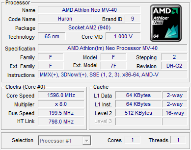Lenovo X100e весит полтора килограмма с шестиячеечной батареей, а с трёхъячеечной примерно на 250 граммов меньше. Более ёмкий аккумулятор обеспечивает большее время автономной работы, но в то же время выпирает за пределы корпуса на пару сантиметров. Кроме того он слегка перевешивает ноутбук, в результате чего тот не очень удобно держать на коленях. Как уже было сказано выше, Lenovo X100e базируется на платформе AMD. В качестве процессора используется одноядерный AMD Athlon Neo MV-40 с частотой 1,6 ГГц. Графическая подсистема представлена интегрированной видеокартой из серии ATI Mobility Radeon HD3200, которая намного производительнее аналогичного решения Intel GMA 4500. Не совсем понятно, зачем в бизнес-ноутбук устанавливать видеокарту, которая предназначена скорее для развлечений, чем для рабочих задач. Время автономной работы от этого только страдает, а поиграть в современные игры или посмотреть полноразмерное видео высокого качества всё равно не получится. Любопытно, что на ноутбуке отсутствуют привычные наклейки с логотипами AMD и Radeon. Разработчики то ли постеснялись, то ли решили не захламлять корпус лишними рюшечками.