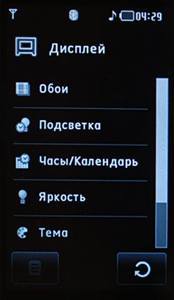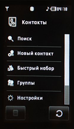 Слот для карты памяти расположен в крайне неудобном месте. Для установки элемента придется выключить аппарат и извлечь аккумулятор. В комплекте поставляется карта MicroSD объемом 256 Мб. Для большинства нужд ее хватит. Потенциальные покупатели вряд ли огорчаться из-за отсутствия возможности «горячей» замены карты. К тому же в режиме плеера телефон использовать проблематично, но об этом позже. ФункцииТелефон Prada замечательно выглядит и прекрасно собран. В то же время функционал устройства не так однозначен. Под красивой flash-оболочкой скрывается традиционное для телефонов LG меню со всеми его достоинствами и недостатками. Оболочка представлена корневым меню, диалогами подменю и надстроена над некоторыми функциями. Последнее необходимо для постоянного присутствия кнопок возврата, отмены и меню, то есть для обеспечения функционала, аналогичного софт-клавишам. Меню логично структурировано. Все активные (нажимаемые) компоненты достаточно большие, хотя факт нажатия иногда и не фиксируется. Это хорошо видно в видеообзоре. Там же можно заметить красивое оформление меню и эффекты при нажатии «клавиш». По умолчанию каждое нажатие сопровождается звуковым сигналом. Нам он показался раздражающим и мешающим. Тактильных ощущений во время нажатия нет вообще. Желающим ощутить прелесть работы с Prada предлагается попробовать постучать пальцами по монитору. Пользователям, не имевшим опыта работы с подобными устройствами, это, скорее всего, покажется неудобным. Автор данной статьи, являющийся обладателем смартфона с сенсорным дисплеем, никаких негативных ощущений не испытал. Скроллинг работает плохо. Возможно, полоса слишком узкая, поэтому датчики фиксируют только сильное надавливание или очень точное позиционирование пальца. После того как интерфейс «понял», что будет использоваться скроллинг, достаточно легчайшего прикосновения к экрану, чтобы он сработал. Меню приходится прокручивать часто, поэтому недоработка скролла может раздражать.