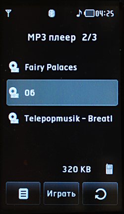 Аудиоплеер откровенно разочаровал. По функционалу он напоминает проигрыватели в самых первых телефонах с данной функцией или бюджетные решения предыдущего поколения. Все треки помещаются в единственный плейлист без возможности сортировки. Чтобы плеер работал в фоновом режиме, надо выбрать соответствующую опцию меню. При нажатии клавиши отбой выключаются все приложения, в том числе плеер. Звук можно настроить с помощью эквалайзера. Аппаратные кнопки проигрывателя на корпусе отсутствуют, но в комплектуемой гарнитуре имеется весь необходимый для управления воспроизведением функционал. Качество звука в наушниках не впечатлило. Оно удовлетворит только нетребовательного пользователя. К телефону можно подключить беспроводную стереогарнитуру. У нас с этим проблем не возникло; качество звука стало лучше, но ощущалась нехватка низких частот.