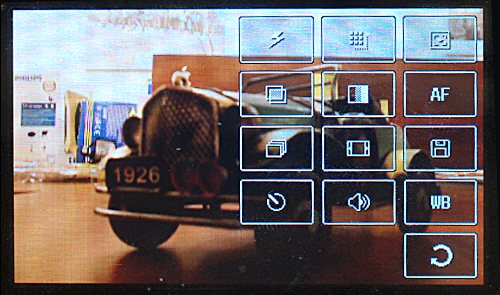Интерфейс камеры максимально удобен и полностью адаптирован для сенсорного управления. При клике на экран появляется массив полупрозрачных кнопок. Они не подписаны, поэтому их предназначение приходится выяснять вручную. Список функций обычный.