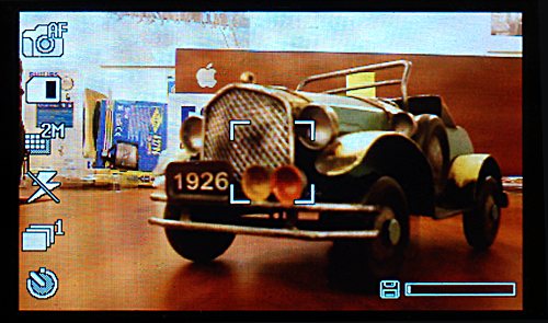 Несмотря на широкий экран, фотографии получаются стандартного соотношения 4:3. Снимки немного нечеткие, зато без шумов. Иногда баланс белого очень сильно промахивается, отчего изображение окрашивается в фиолетовые тона.