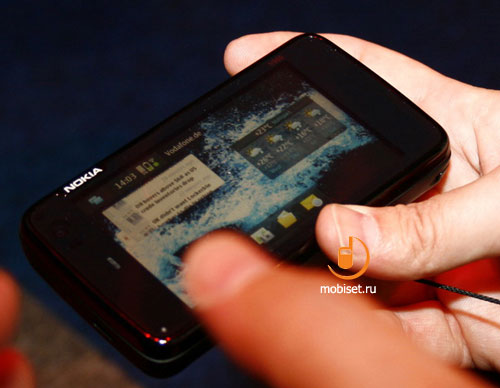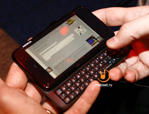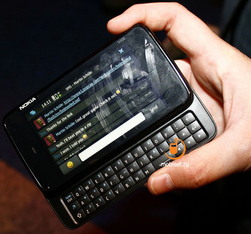 LIVE@Nokia World 2009. Впечатления от Nokia N900 на Maemo 5Утечки информации, произошедшие в преддверии Nokia World 2009, конечно, заметно снизили эффект от появления Nokia N900. Тем не менее, появление этого смартфона является важнейшим событием в современной истории Nokia и в зале для демонстраций этот продукт в эти два дня остается самым востребованным. Специально обученный персонал охотно демонстрирует его возможности, благо в этот раз им есть что показать. ![]() ![]() ![]() По параметрам Nokia N900 во многом повторяет N97, поэтому рассказывать о характеристиках камеры, беспроводных модулях и прочих технических аспектах мы не будем. Все это Вы найдете в отдельном материале, сейчас эта информация вторична. ![]() ![]() Размеры N900 являются промежуточным звеном между планшетами и сенсорными смартфонами. Он шире, чем Nokia N97 и довольно «пухлый» за счет выдвижной клавиатуры. Последняя, кстати, довольно удобна и сноровистые ребята с надписью «Nokia N900» управлялись с ней очень умело. ![]() ![]() Однако клавиатура не так интересна как возможности интерфейса Maemo 5. Для начала отмечу, что, несмотря на раннюю версию прошивки, аппарат работает быстро. Действительно быстро. Даже десяток запущенных приложений не способны заставить N900 не то что бы «повиснуть», а даже существенно замедлить свою работу. ![]() ![]() Контакты из телефонной книги «вешаются» на рабочий стол в виде иконок, кликнув на которые Вы переходите к выбору предпочтительного способа коммуникации. ![]() Рабочих столов на N900 может быть до 4 штук, переключиться между ними можно одним движением пальца по экрану. Вообще, возможности по персонализации N900 очень велики, что, конечно, не может не радовать. ![]() Работа с сообщениями организована в виде чата. Смартфон «сваливает» все письма в единый список, это могут быть сообщения Google Talk, SMS, MMS и т.д. Сортировка возможна по любому параметру, поэтому работать с почтой удобно. ![]() Важной особенностью Nokia N900 является многозадачность. Она поддерживается в полной мере, к примеру, браузер с видеороликом YouTube, продолжает загрузку и воспроизведение даже в свернутом состоянии. Это относится и к другим приложениям – они продолжают полноценно работать, находясь в фоновом режиме. ![]() Несмотря на то, что технология multi-touch в N900 отсутствует, различные «фишки», упрощающие пользователю работу с устройством, все же имеются. К примеру, вращательные движения пальца по экрану зуммируют страничку в браузере. Такие мелочи демонстрируют законченность интерфейса, он не выглядит «сырым». ![]() ![]() На этом предварительный рассказ о Nokia N900 закончен, остается лишь добавить, что аппарат поступит в продажу в течение ближайших месяцев по цене 500 Евро. Наслаждайтесь фотографиями смартфона и следите за обновлениями материалов с Nokia World 2009. Автор: Михаил Калинин Источник: Mobiset.ru