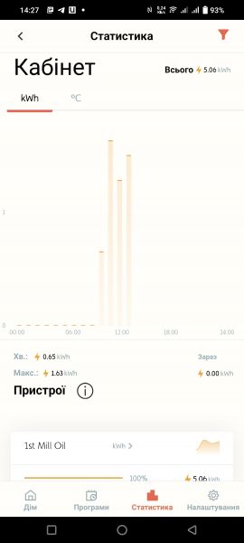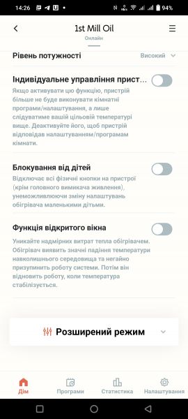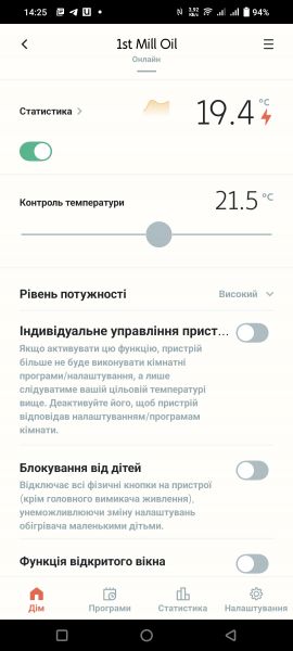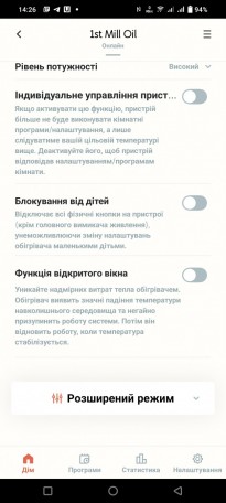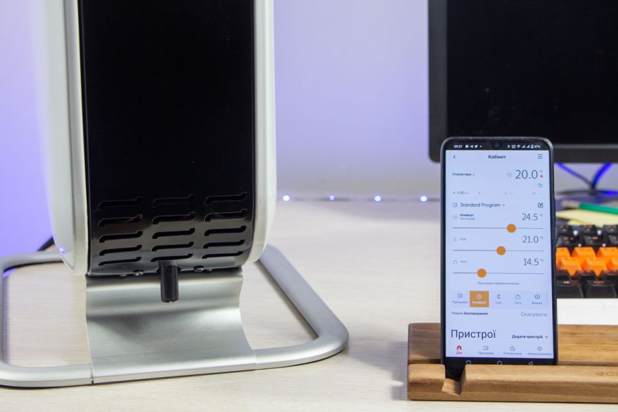 Огляд масляного обігрівача Mill 1500W WiFi: потужність 1500 Вт, сучасний дизайн та управління через застосунокMill 1500W WiFi – smart-обігрівач, який змінює уявлення про те, як в наш час мають виглядати масляні обігрівачі на думку норвезького виробника Mill. Прибираємо старомодні елементи, візуально позбавляємось схожості з секційними ребристими радіаторами, але додаємо сучасні матеріали в дизайн і даємо користувачу можливість керувати пристроєм не лише з корпусу, але і через мобільний застосунок. Подробиці по характеристикам і можливостям обігрівача розповідаю в огляді. Дизайн і Корпус Масляний обігрівач Mill 1500W WiFi з першого погляду виглядає аж занадто мінімалістично та стримано, по-скандинавськи. Відразу і не впізнаєш в ньому пристрій, яких може швидко та з комфортом для власника підвищити температуру в приміщенні до бажаного значення. Дехто може сплутати його зі зволожувачем повітря, але це - обігрівач. Причому конструкція спроектована таким чином, щоб максимально впливати на ефективність роботи. Габарити корпусу: 344 х 216 х 656 мм. Інженери та дизайнери Mill в конструкції моделі 1500W WiFi вирішили залишити найкращі та перевірені роками ефективні рішення, але додали і свої напрацювання. Концепція відкритих ребер радіатора була відкинута, а на заміну їй прийшов закритий на боках корпус, який змушує гаряче повітря підніматися через ребра, нагріваючи кімнату майже на 30% швидше та рівномірніше, ніж традиційні конструкції. На боках обігрівача білі сталеві панелі. Між ними чорна металева решітка, яка на лицьовому ребрі додатково містить панель зі світлодіодним екраном, клавішами керування під ним та індикаторами роботи над ним, а також колесо та окрему клавішу для налаштування пристрою. Екран інформативний, а кількість клавіш достатня, щоб налаштувати пристрій навіть без застосунку. Але зі смартфона все звичайно ж простіше. В основі корпусу – алюмінієва ніжка, яку необхідно приєднати до направляючих самостійно. І це єдине, що вимагає від користувача виробник по частині збірки. Ще він попросить встановити вас додаток на смартфон, але про це трішки пізніше. Тож щодо зовнішнього вигляду, збірки та підбору матеріалів, то Mill 1500W WiFi – це еталонний обігрівач, у якому не зміг знайти недоліки. Можливо відсутність колес для зручності переміщення комусь і не сподобається, але, наприклад, для мене не було проблемою перемістити обігрівач з однієї кімнати в іншу піднявши його за приховану ручку над дисплеєм. Можливості Основне завдання масляного обігрівача Mill – забезпечити комфортну температуру в приміщенні до 15 м2. Причому робить він це тихо та комфортно для власника, без осушування повітря та «паління» пилу. На відміну від панельних обігрівачів, масляний хоч і нагрівається трішки довше, але перевага полягає в тому, що масло не контактує безпосередньо з повітрям. Пристрій на огляді, як і інші конвекційні обігрівачі забирає холодне повітря знизу та випускає гаряче згори. Це ефективний спосіб обігріву приміщення, оскільки він створює повітряний потік без рухомих частин. В компанії називають цю технологію Mill Heat Boost. Коли тепле повітря від обігрівача втрачає тепло, воно опускається назад на підлогу, і процес повторюється. Модель Mill 1500W WiFi не перевантажили великою кількість функцій, але ті що доступні обов’язково стануть корисними в повсякденному користуванні. П