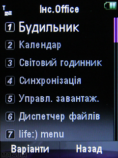 Пункт меню «инструменты» содержит будильник, календарь, мировое время, синхронизацию, диспетчер загрузок, диспетчер файлов, калькулятор и список заданий. В настройках можно менять профили, темы, настройки звонка, устанавливать подключение к Wi-Fi, редактировать типы соединения — активировать Bluetooth, менять голосовую сеть, устанавливать параметры USB-соединения, в которых есть несколько вариантов подключения к ПК: Kodak EasyShare, синхронизация, карта памяти, модем и печать через USB.