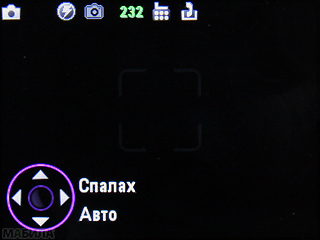 Пятипозиционный навигационный блок служит для выбора настроек камеры. Можно регулировать настройки вспышки, баланса белого и фокуса. Кроме того, можно устанавливать режим недостаточного освещения, или ставить на снимки метки. Камера неплохо снимает и склеивает панорамы и дает возможность выбирать лучшие кадры из мультисъемки.
