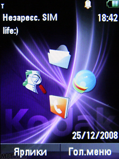 На правой боковой грани расположена клавиша-качелька регулировки громкости, ползунок для блокировки клавиатуры, и крупная клавиша камеры. Телефон собран на совесть, все детали плотно подогнаны, люфтов и поскрипываний нет. В телефоне применен Li-Ion аккумулятор емкостью 920 мАч. По заявлению производителя, мощности аккумулятора хватит на 580 часов работы в режиме ожидания и до 9.5 часов в режиме разговора. В условиях активного использования, аппарат способен проработать не более 2-х дней.