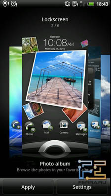 Как и раньше, Sense 3.0 предлагает семь рабочих столов. Их число постоянно: удалить лишние или добавить новые нельзя. Доступно шесть сюжетов, каждый из которых меняет обои и набор виджетов. Конечно, каждую из тем можно откорректировать как угодно. Вы можете в любой момент поменять обои на рабочем столе, рингтоны, оформление иконок и многое другое.
