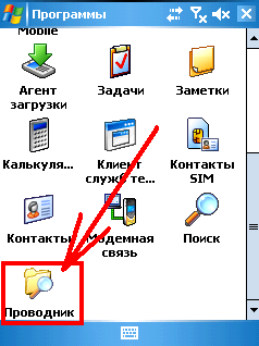 6.2 Далее запускаем проводник Пуск >> Программы >> Проводник. Переходим в папку в которой будет находится файл который мы хотим передать. Нажимаем на нем стилусом и держим, появится всплывающее меню, выбераем Передать файл...