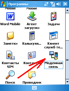 7. Использование комуникатора в качестве модема для ПККоммуникатор rw6815 можно использовать как беспроводной модем, то есть подключать его к стационарному компьютеру/ноутбуку и пользоватся GPRS-интернетом. Услуга GPRS должна быть подключена у вашего оператора мобильной связи. Подключать rw6815 к компьютеру будем посредством кабеля синхронизации (то есть USB-miniUSB) идущим в комплекте. 7.1 Настройку неободимо начинать на КПК. Пуск >> Программы >> Модемная связь. Проверяем чтоб в поле "Подключение:" стояло USB, и нажимаем "Включить". После этого подключаем Коммуникатор к компьютеру.