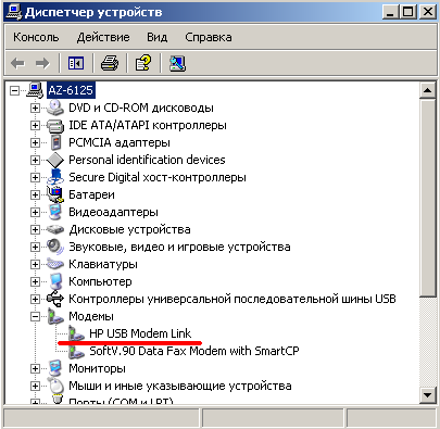 7.9 В этом окне появится ваш модем, называтся он будет "Модем - HP USB Modem Link (COM9)". Последние буквы (COM9) у вас будут отличатся.