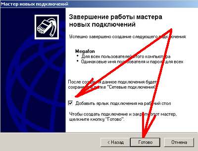 7.12 Ставим галку "Добавить ярлык подключения на рубочий стол", дабы облегчить доступ к соединению. Все на этом настройка закончена, осталось только подключиться.