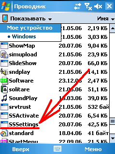 Второй способ запустить меню настройки заставки это запустив проводник (Пуск >> Программы >> Проводник) перейти в папку "Мое устройство >> Windows" и запустить программу SSSetings.